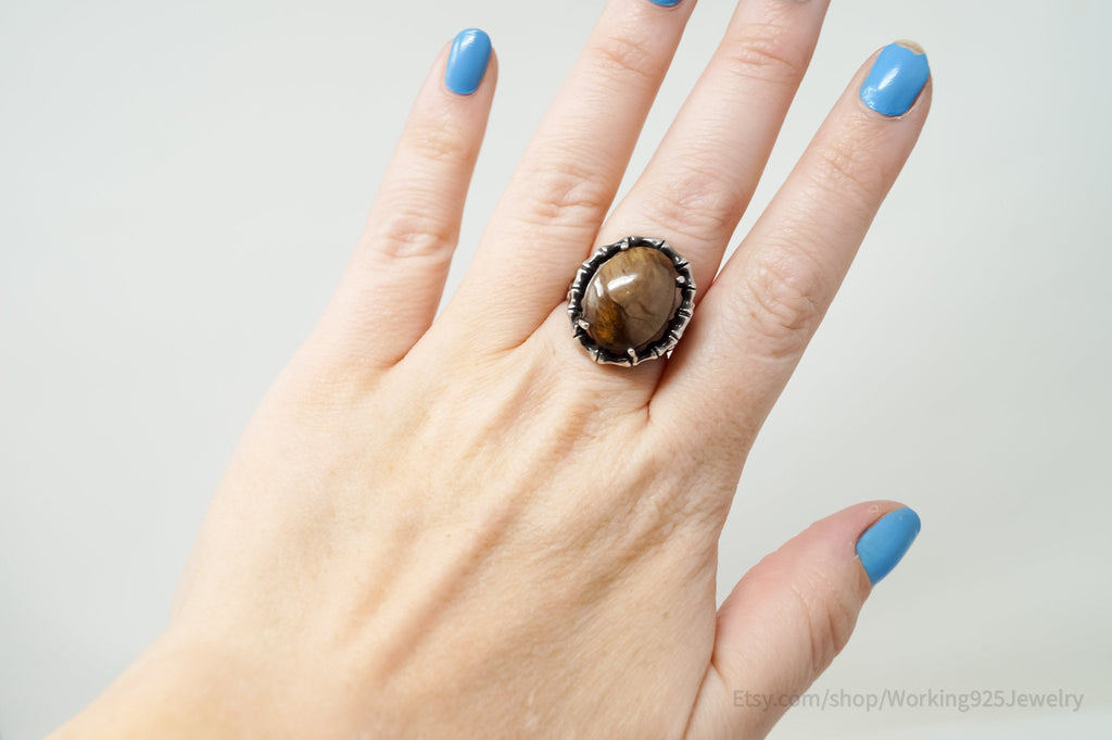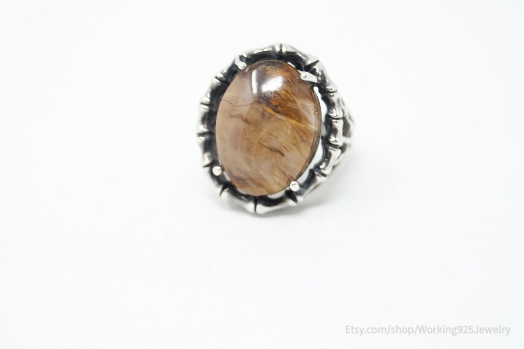 Vintage Jasper Southwestern Bamboo Design Sterling Silver Ring - Size 7.25