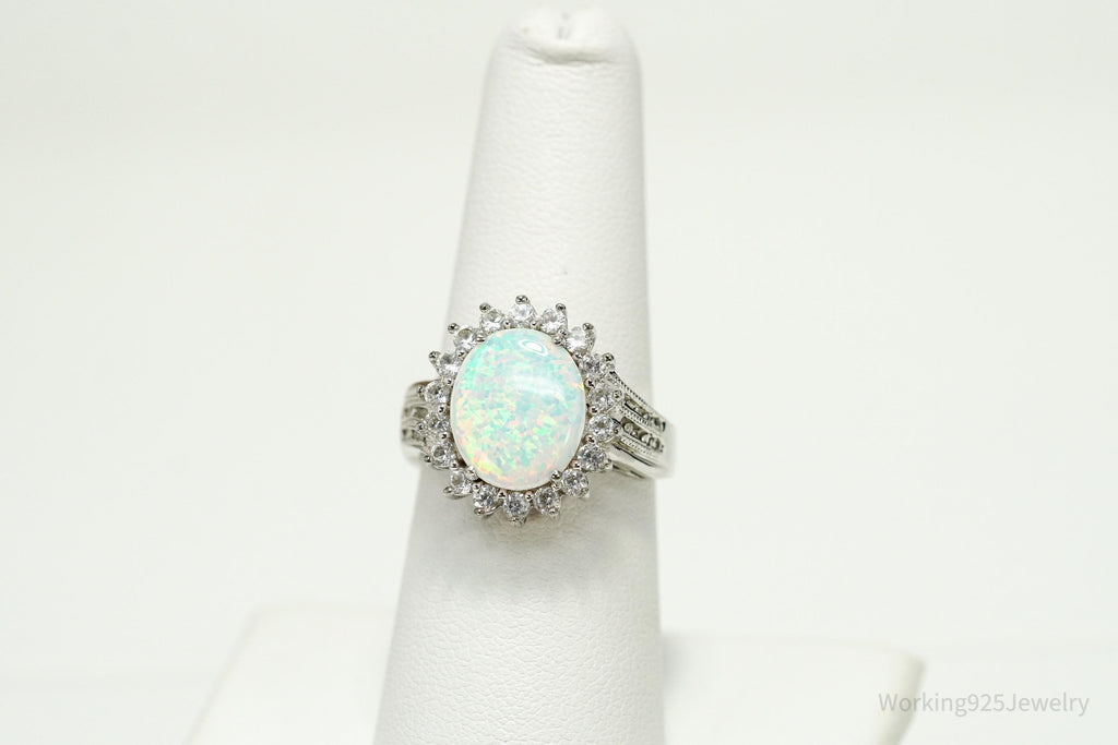 Vintage JWBR Opal, Diamond, & White Topaz Sterling Silver Ring - Size 7