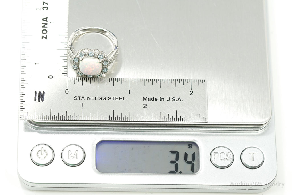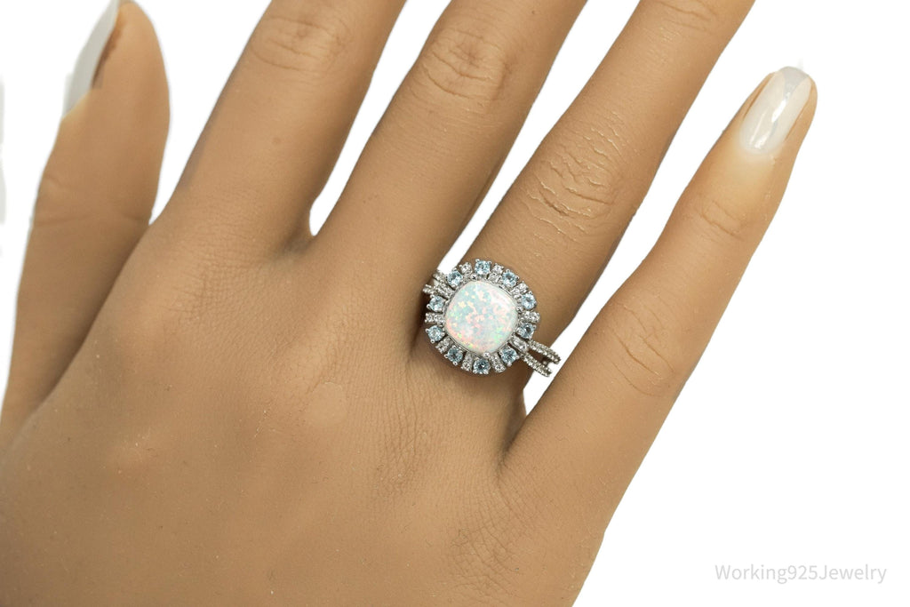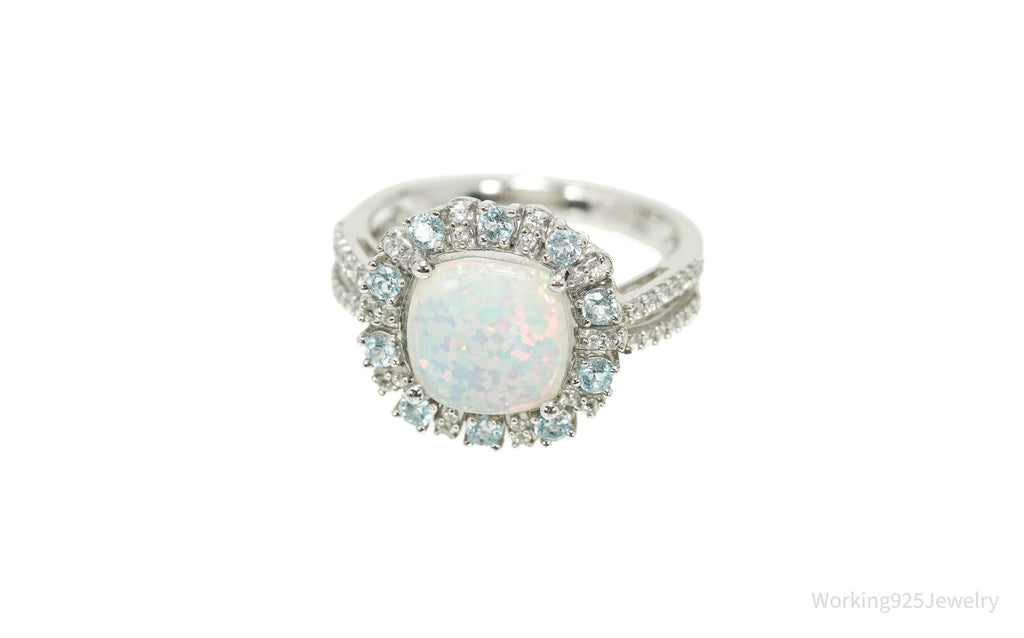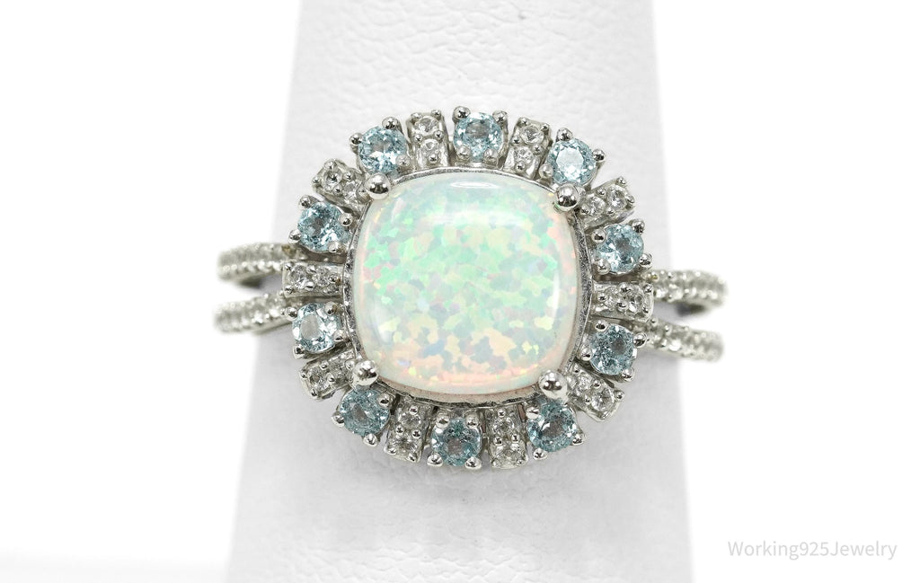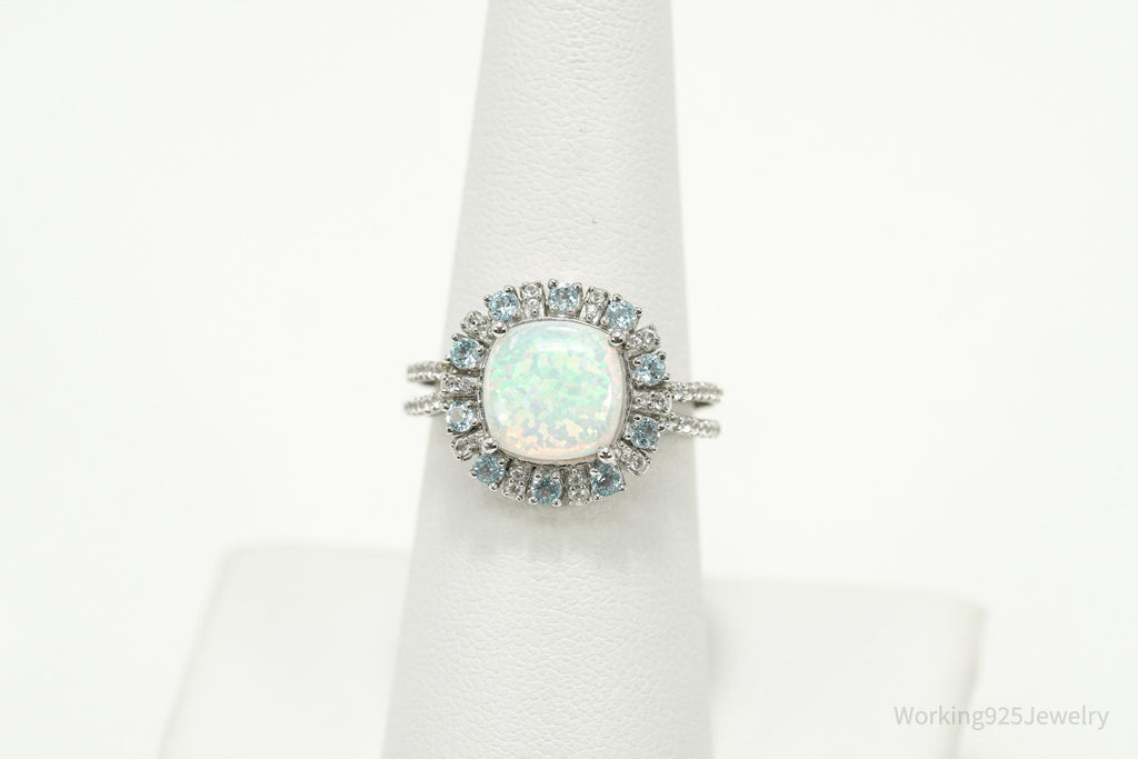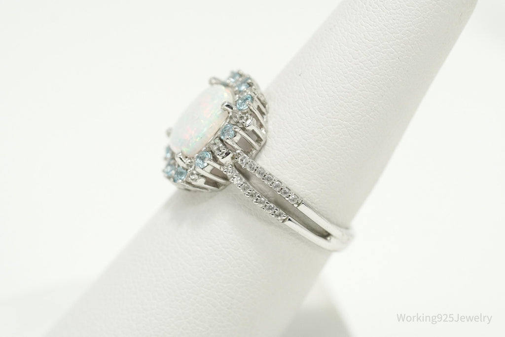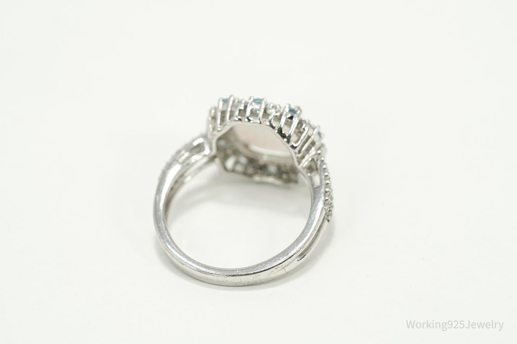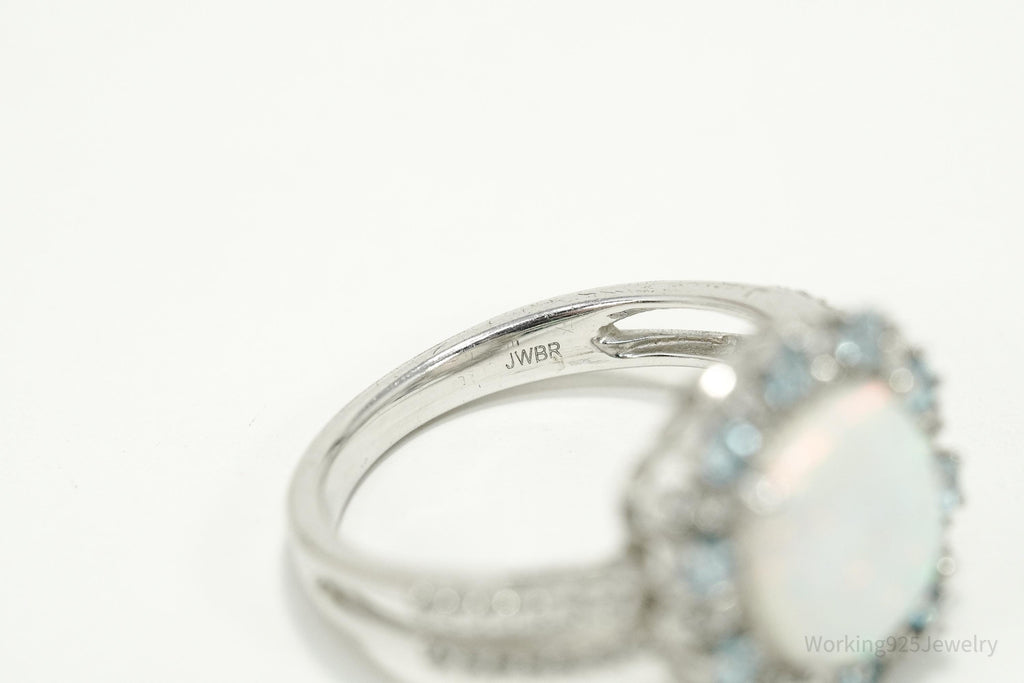 Vintage JWBR Opal, Blue Topaz, & Cubic Zirconia Sterling Silver Ring - Size 7