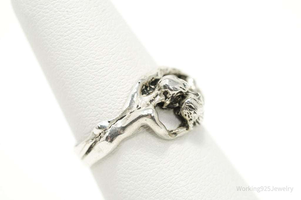 Vintage Kissing Couple Lovers Sterling Silver Ring - Size 5.25