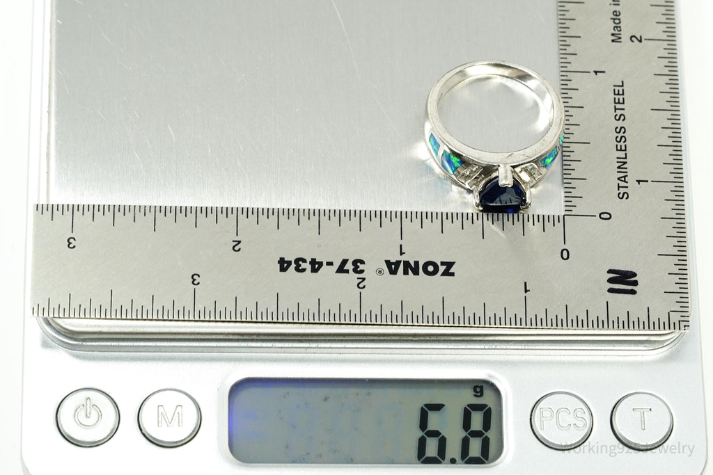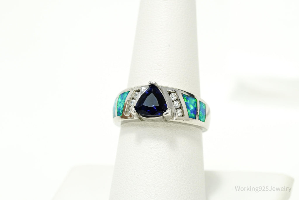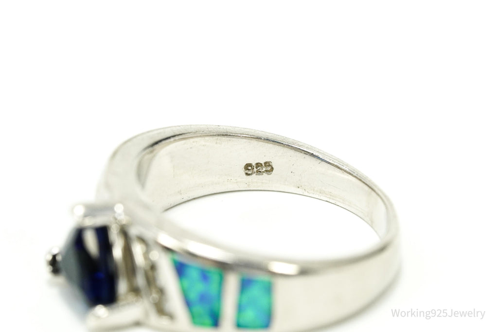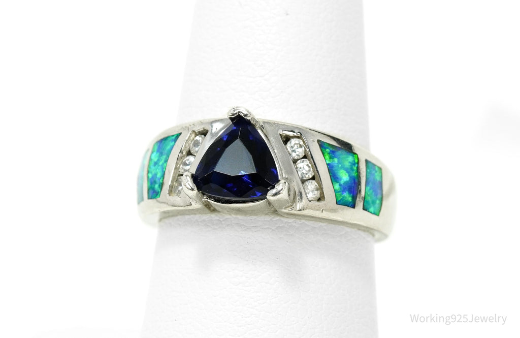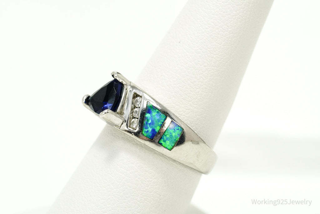 Vintage Lab Created Sapphire Cubic Zirconia Opal Sterling Silver Ring - Size 7.75
