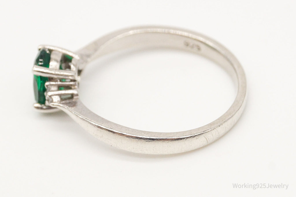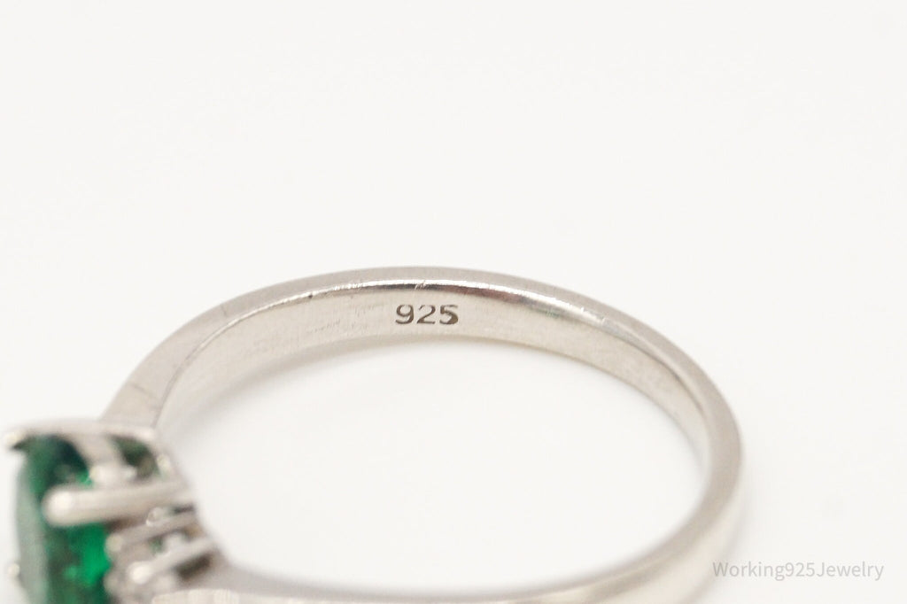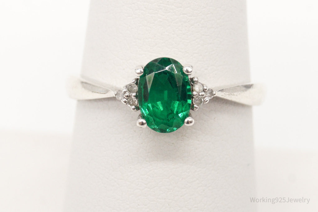 Vintage Lab Emerald Diamond Sterling Silver Ring Size 7.25
