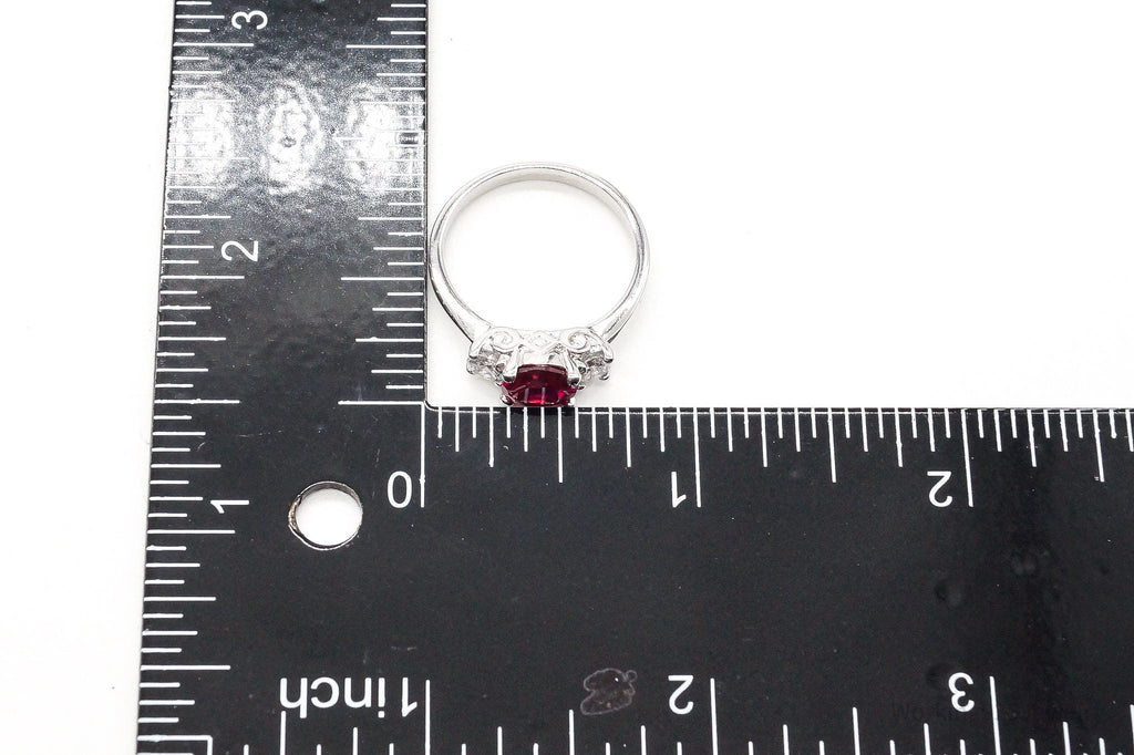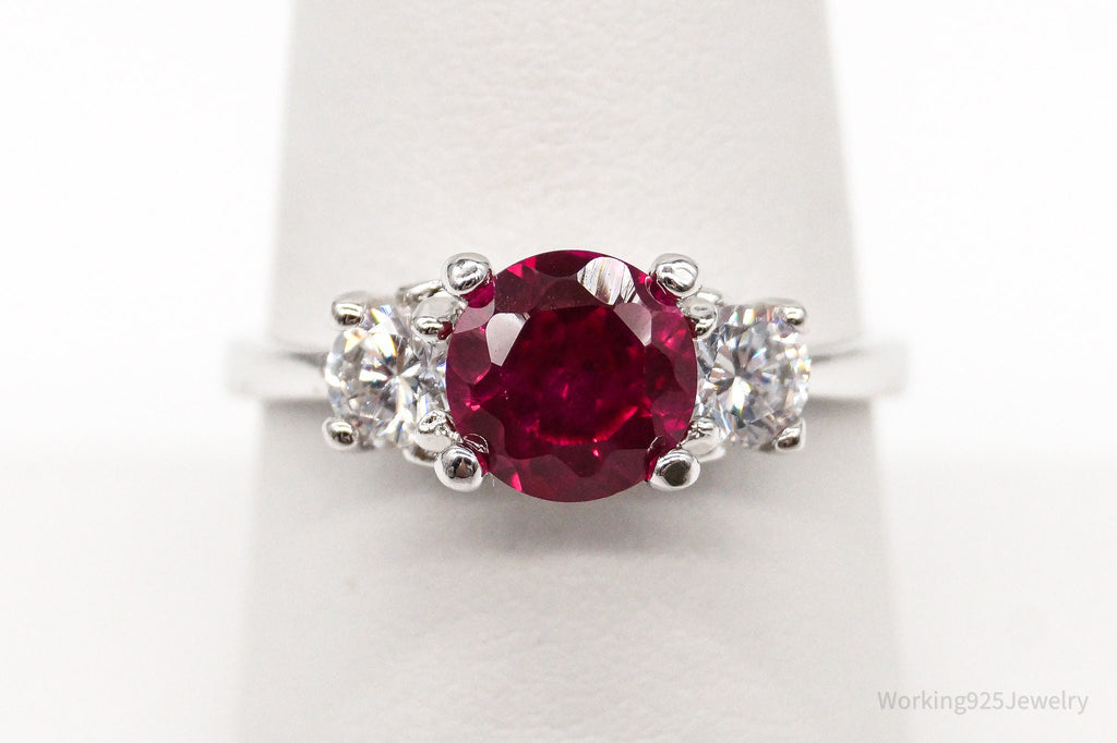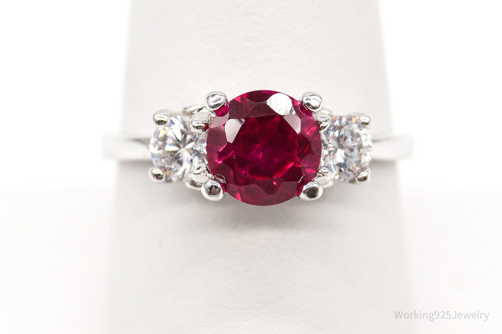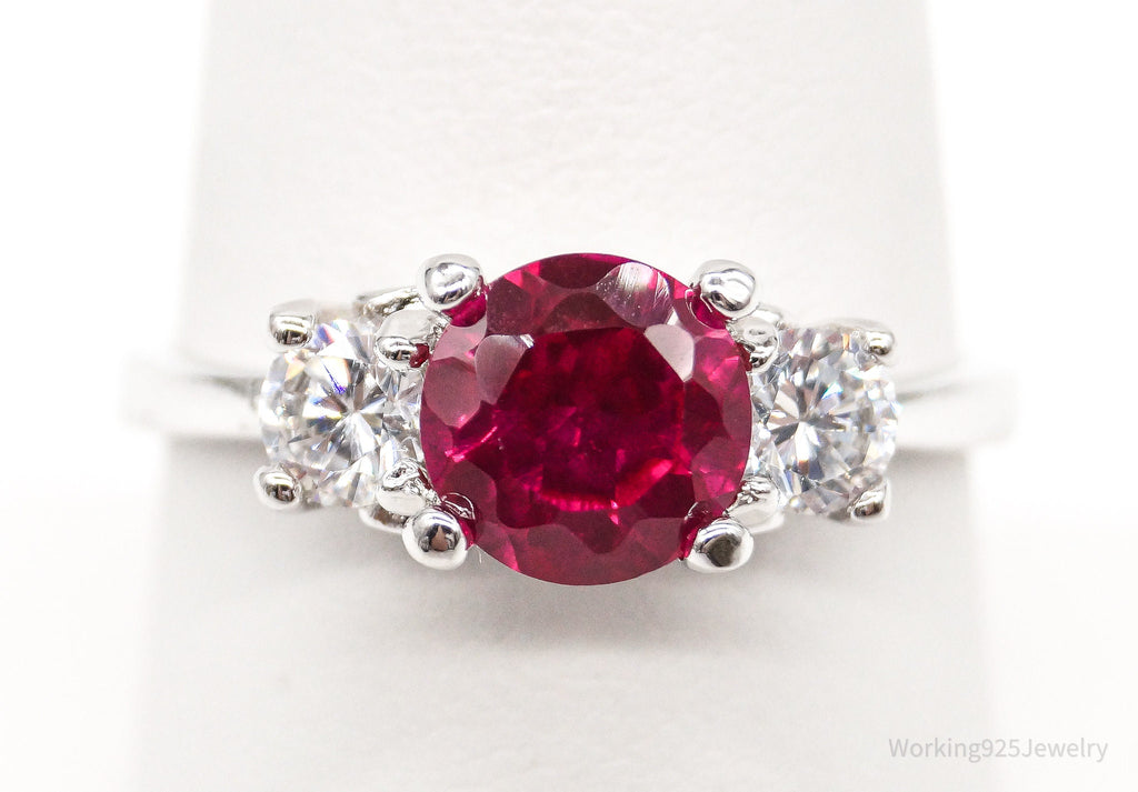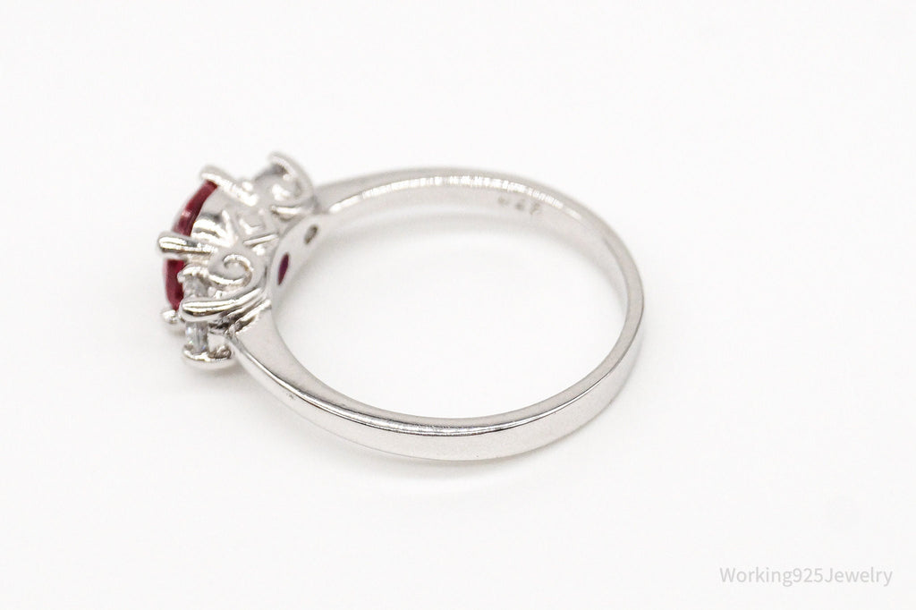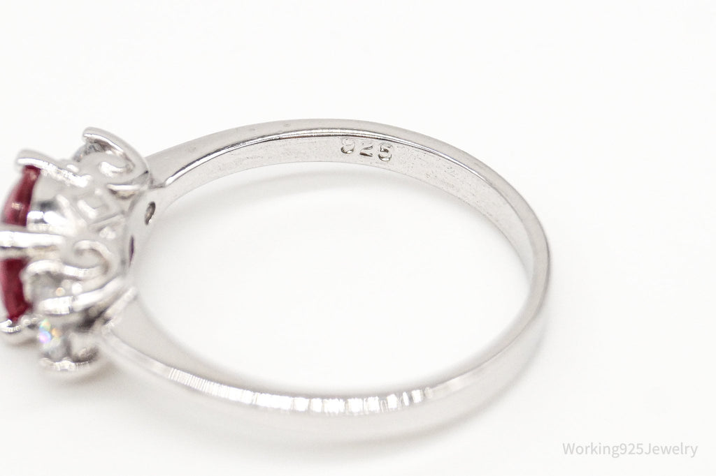 Vintage Lab Ruby Cubic Zirconia Sterling Silver Ring - Size 8.25
