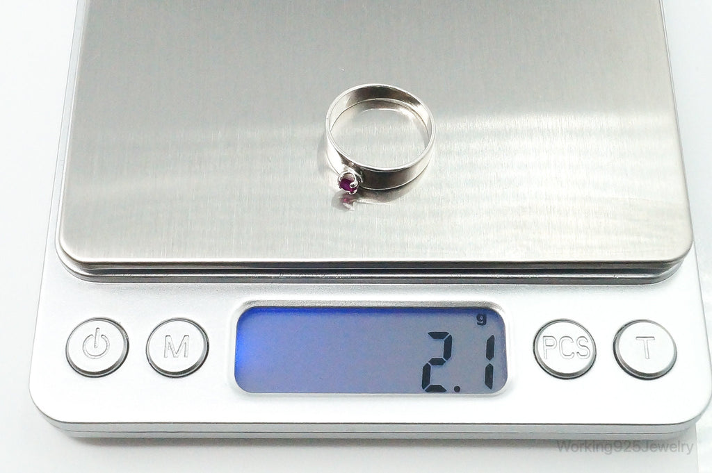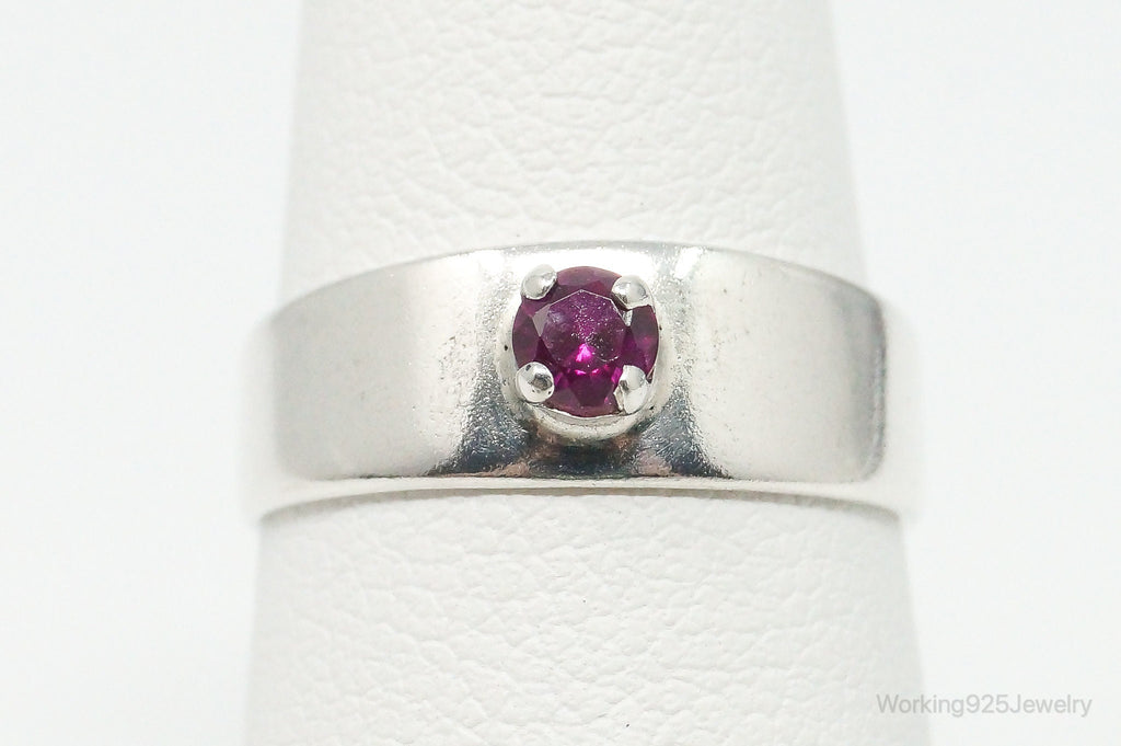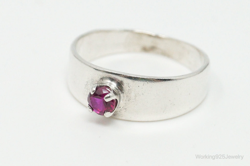 Vintage Lab Ruby Sterling Silver Ring - Size 5.5