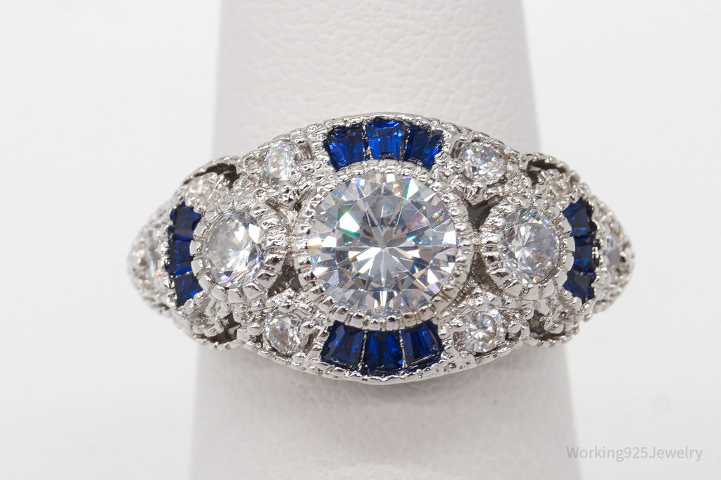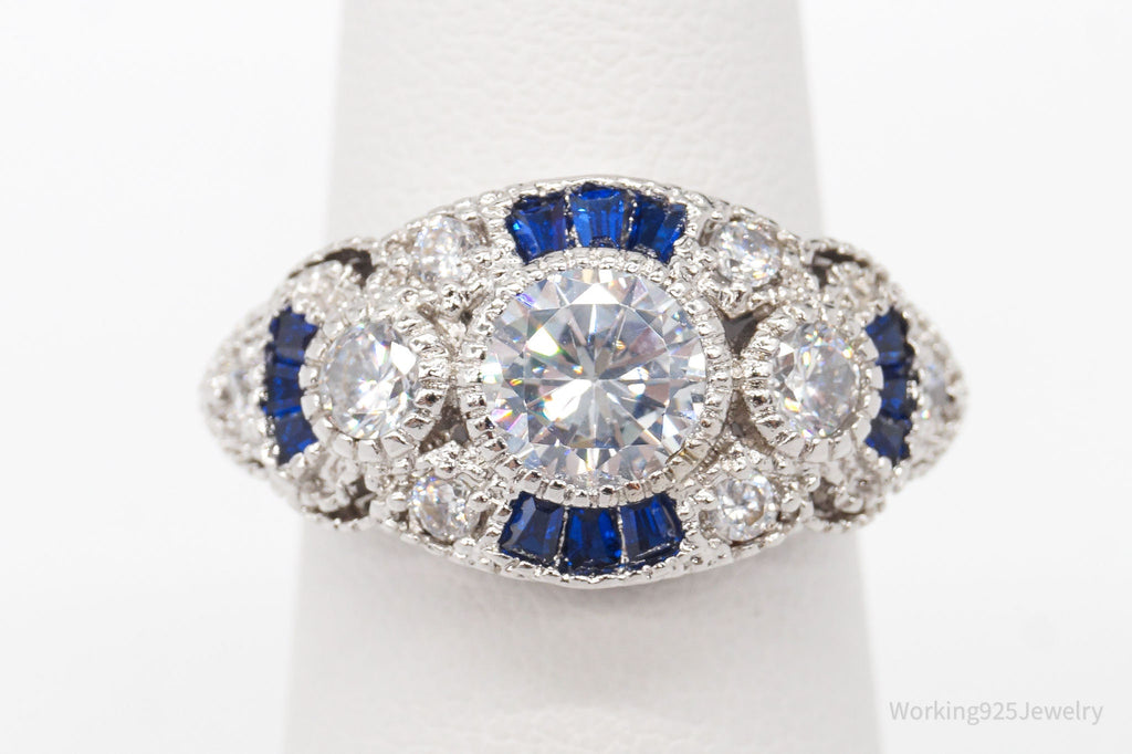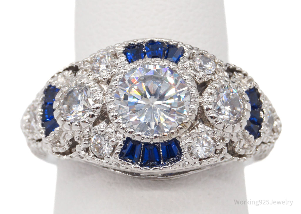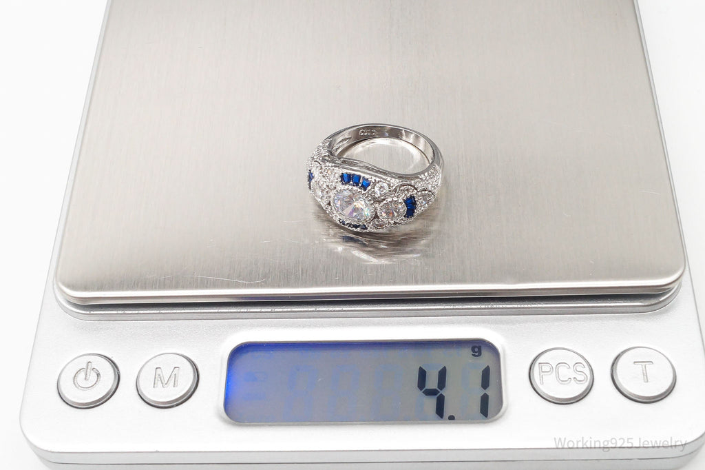 Vintage Lab Sapphire Cubic Zirconia Sterling Silver Ring Size 5.25