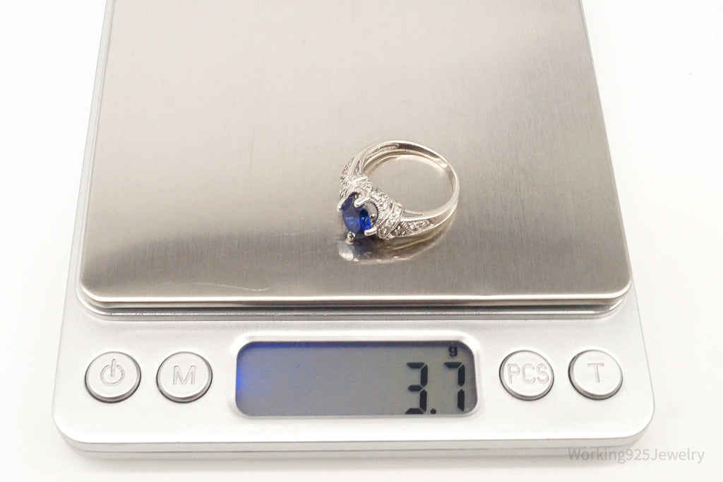 Vintage Lab Sapphire Cubic Zirconia Sterling Silver Ring - Size 6.75