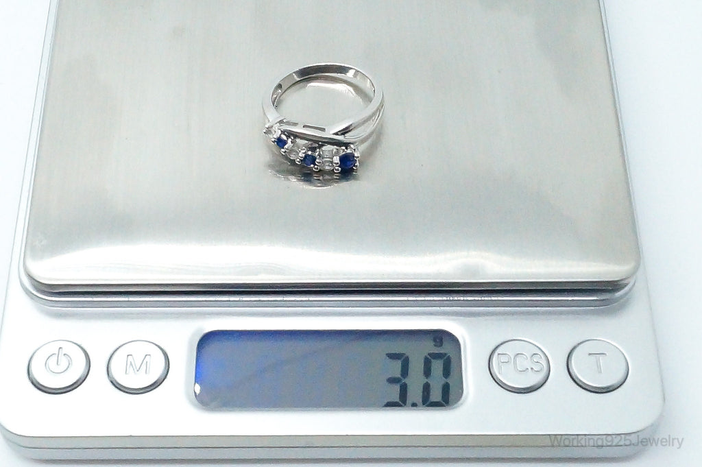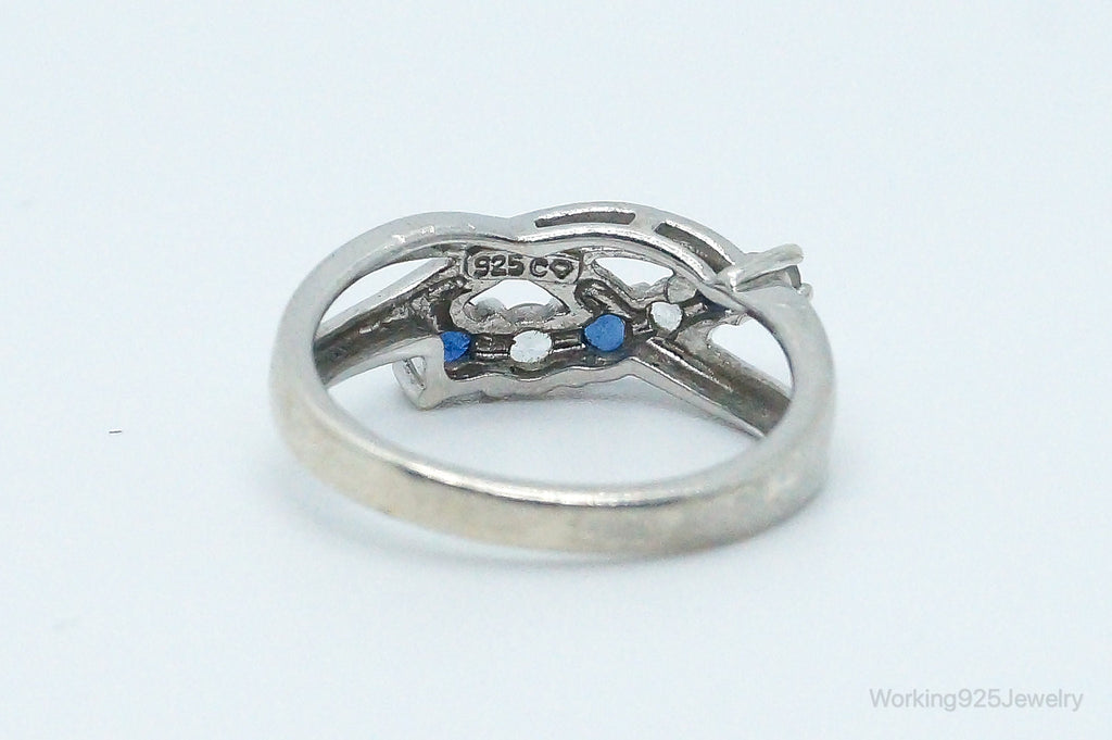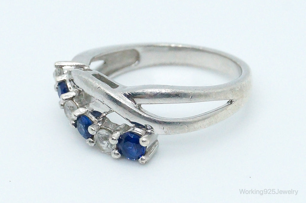 Vintage Lab Sapphire Cubic Zirconia Sterling Silver Ring - Size 7
