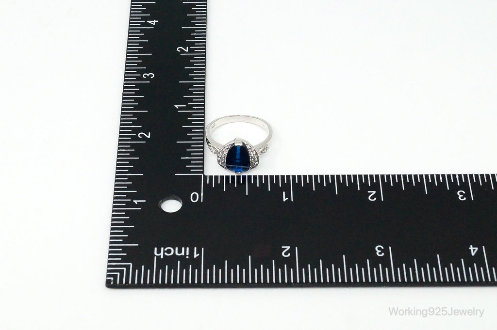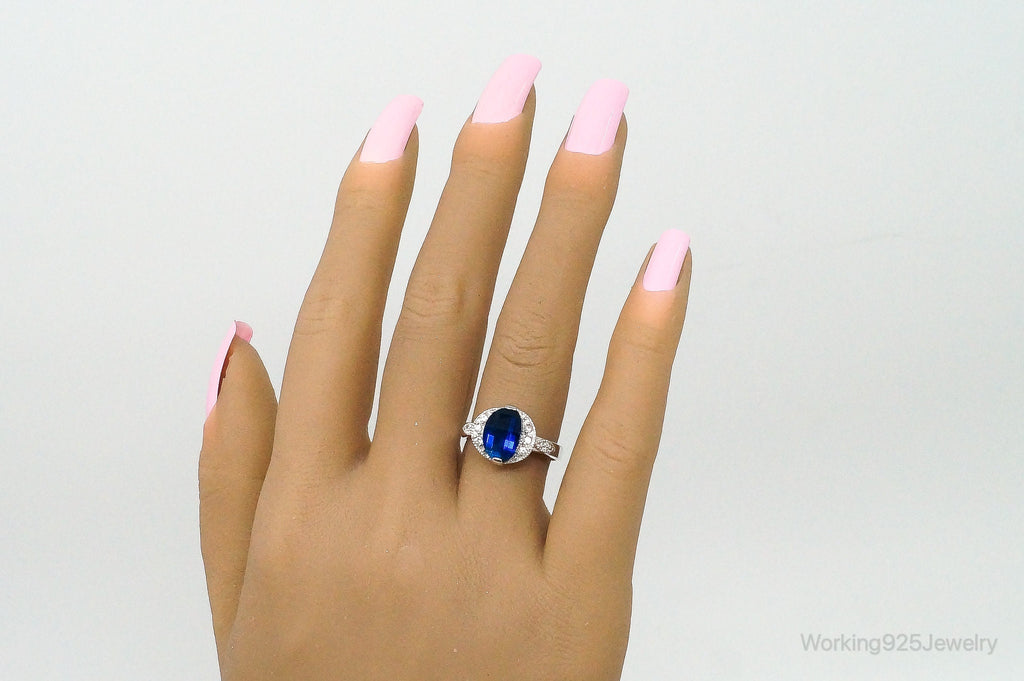 Vintage Lab Sapphire Cubic Zirconia Sterling Silver Ring - Size 7.25