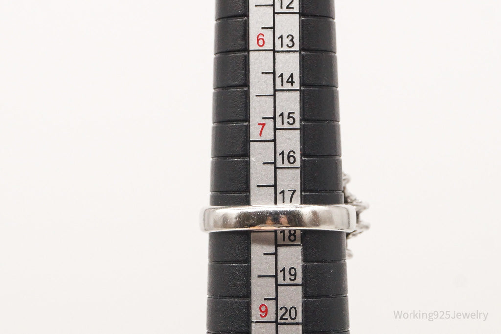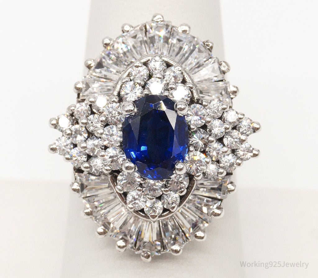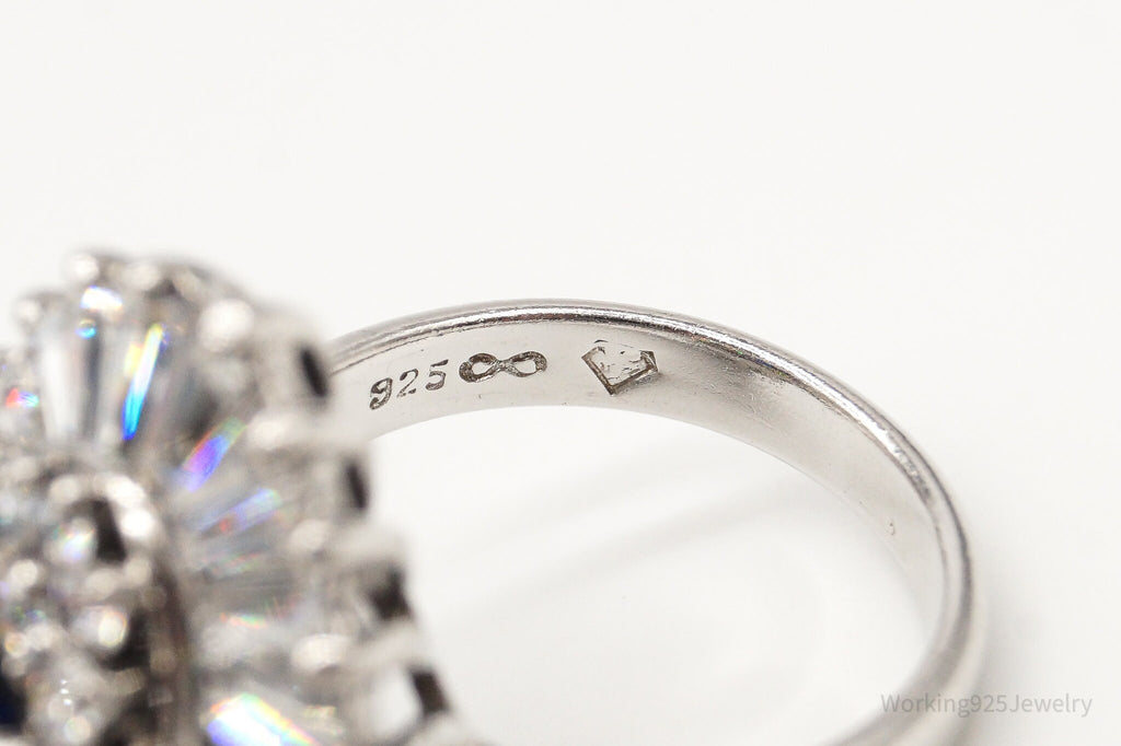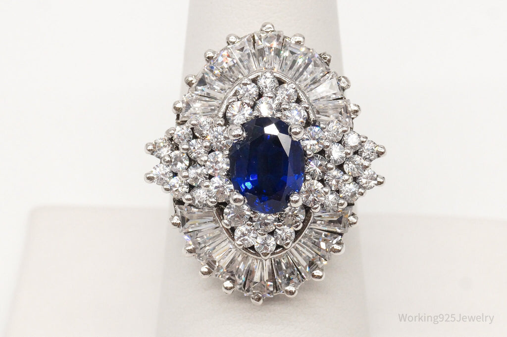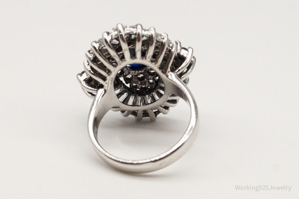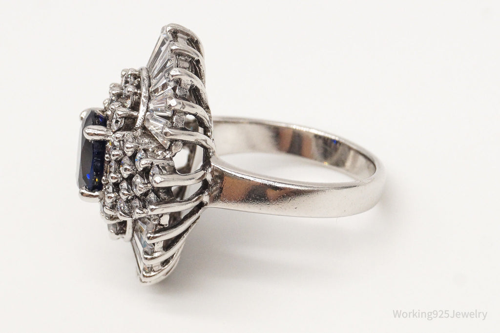 Vintage Lab Sapphire Cubic Zirconia Sterling Silver Ring - Size 8