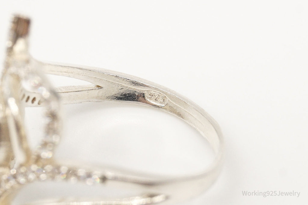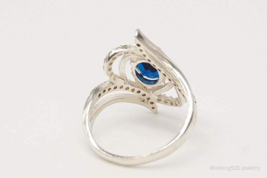 Vintage Lab Sapphire Cubic Zirconia Sterling Silver Ring - Size 8.75