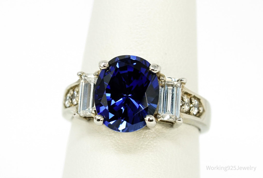 Vintage Lab Sapphire & Diamonique Cubic Zirconia Sterling Silver Ring - Size 8.25