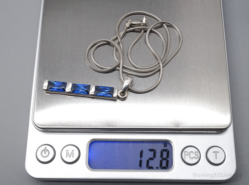 Vintage Lab Sapphire Sterling Silver Necklace 18"