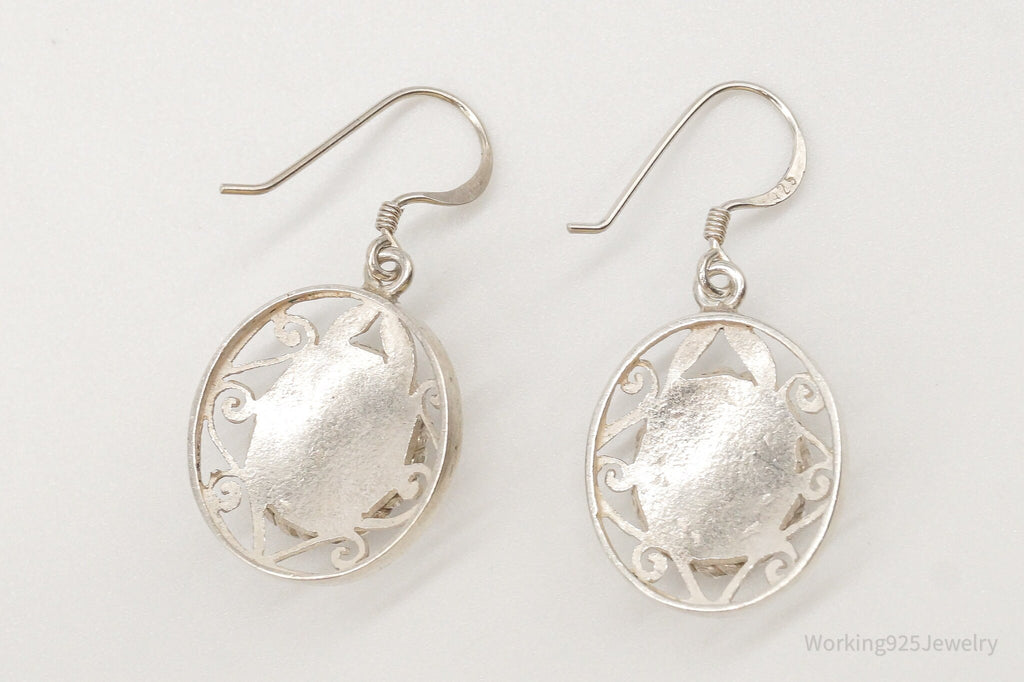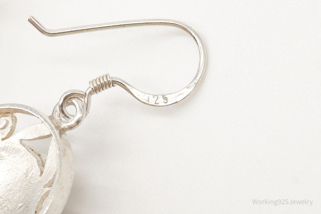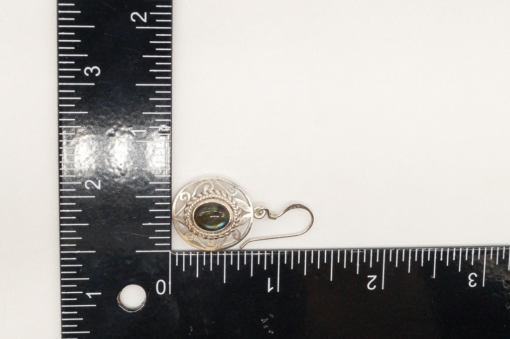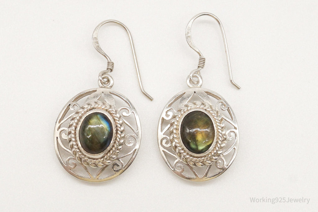 Vintage Labradorite Bali Inspired Filigree Openwork Sterling Silver Earrings