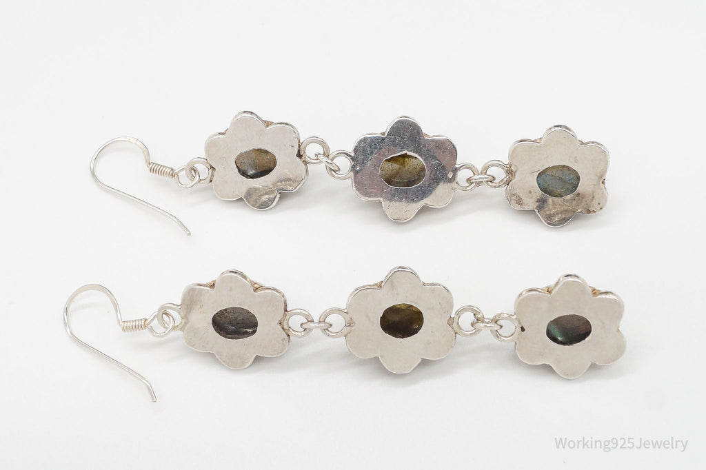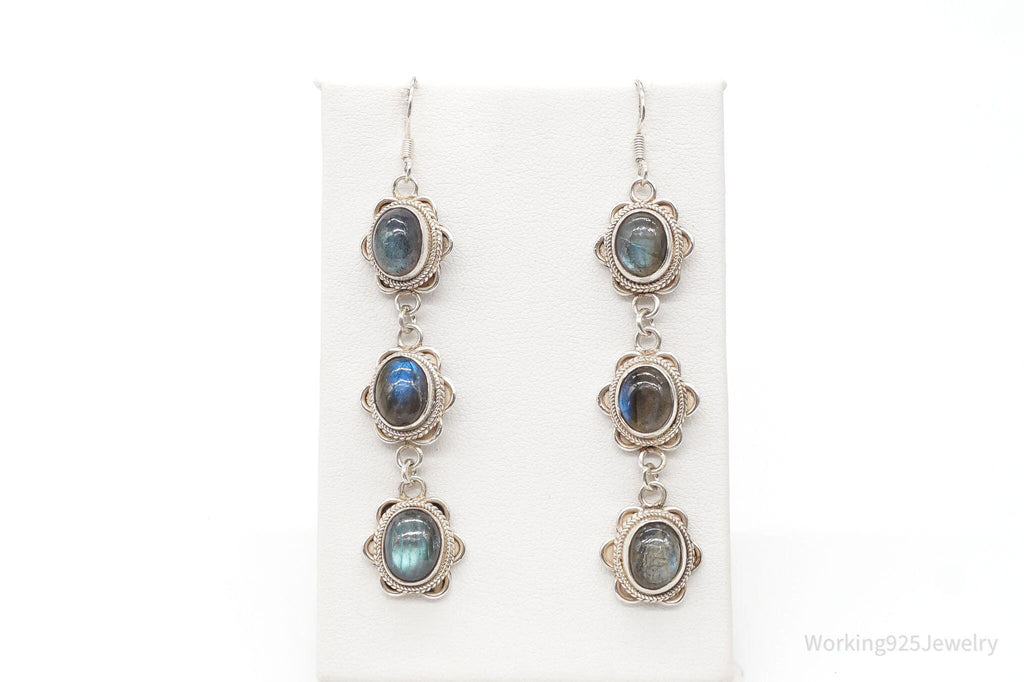 Vintage Labradorite Bali Inspired Sterling Silver Earrings