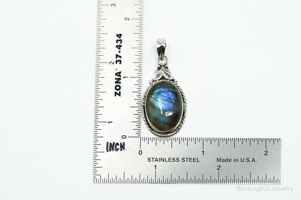 Vintage Labradorite Sterling Silver Necklace Pendant