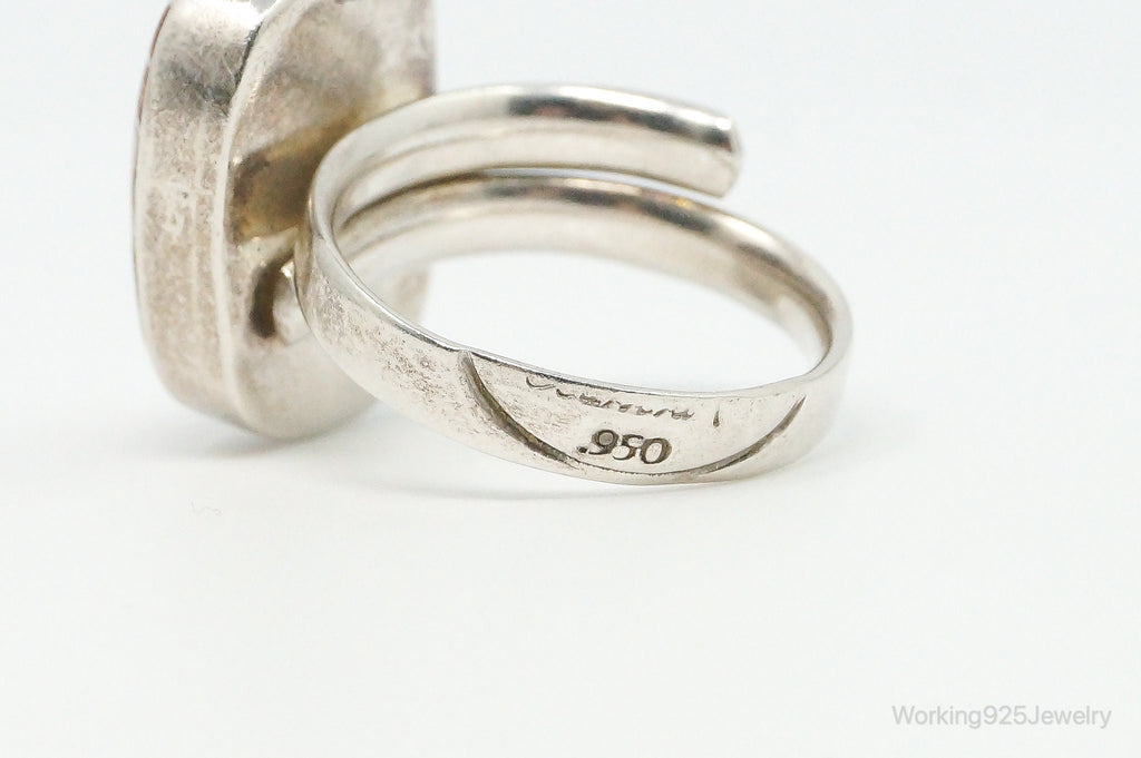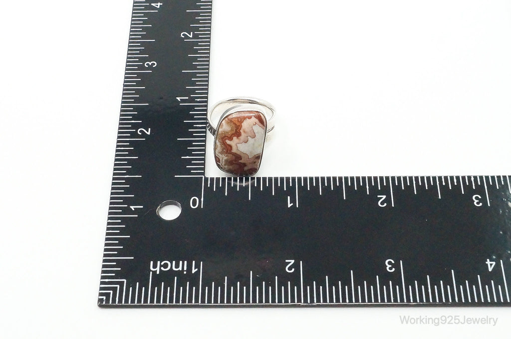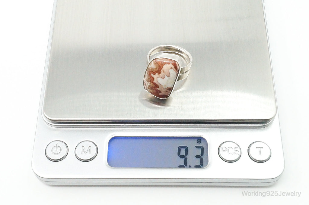 Vintage Lapidara Barrera Crazy Lace Agate Ring 950 Silver - Size 6.5 Adjustable