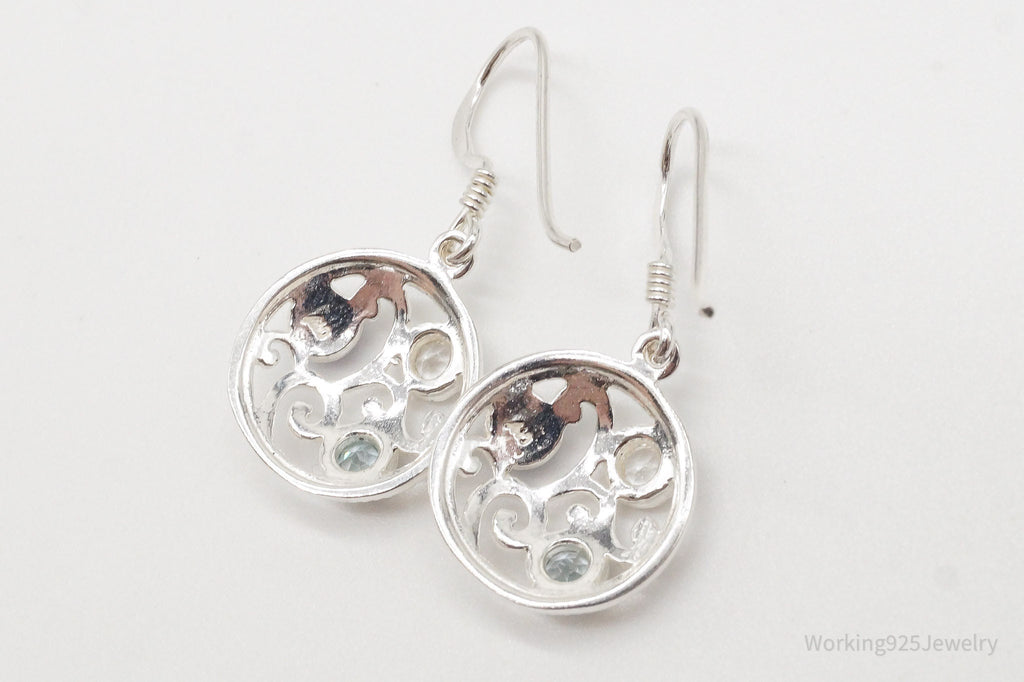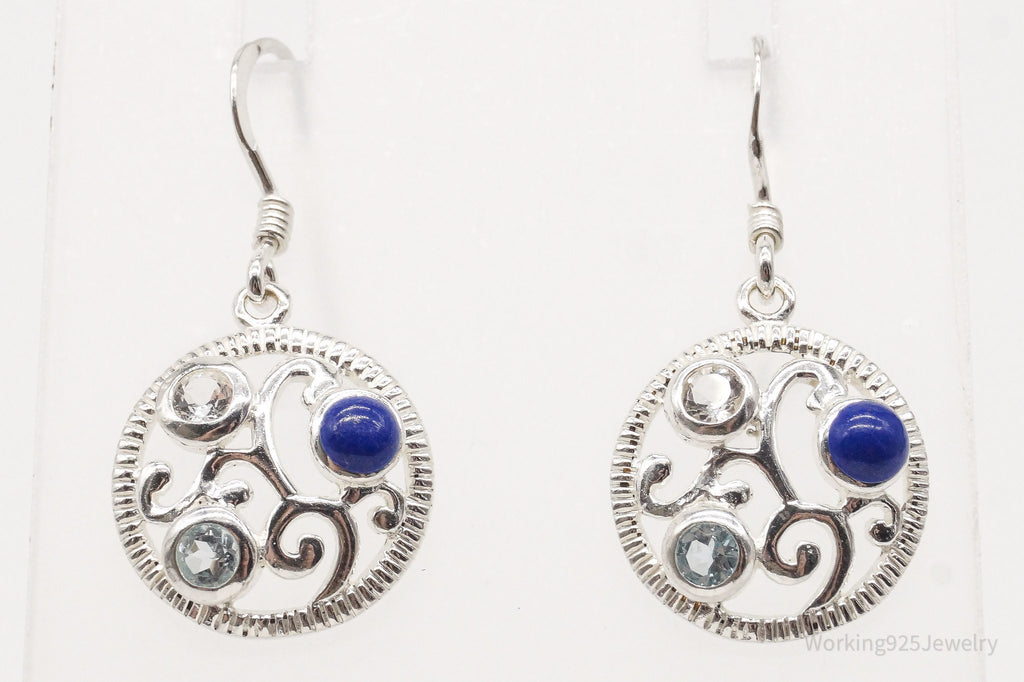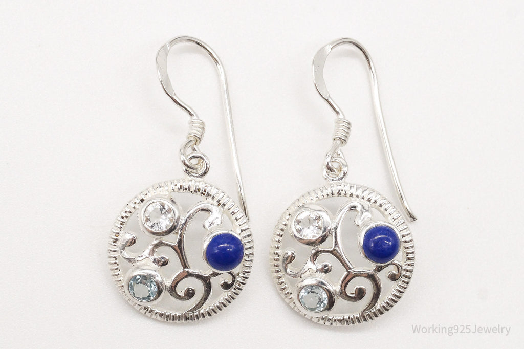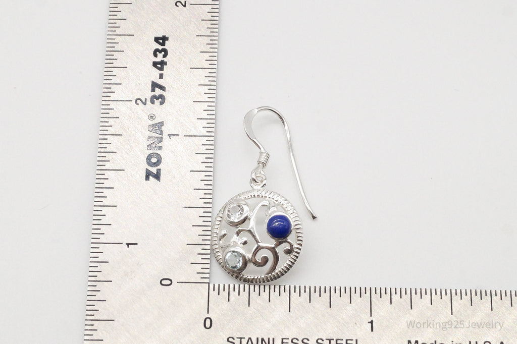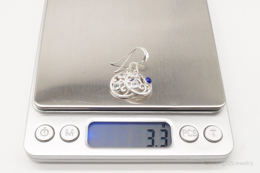 Vintage Lapis Lazuli Blue Topaz Cubic Zirconia Silver Earrings