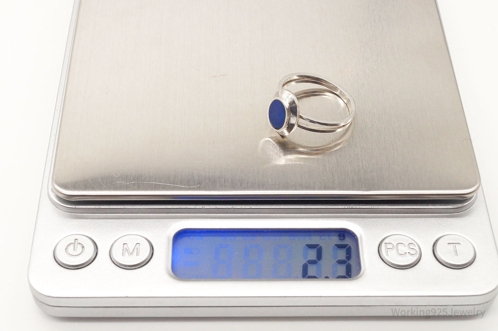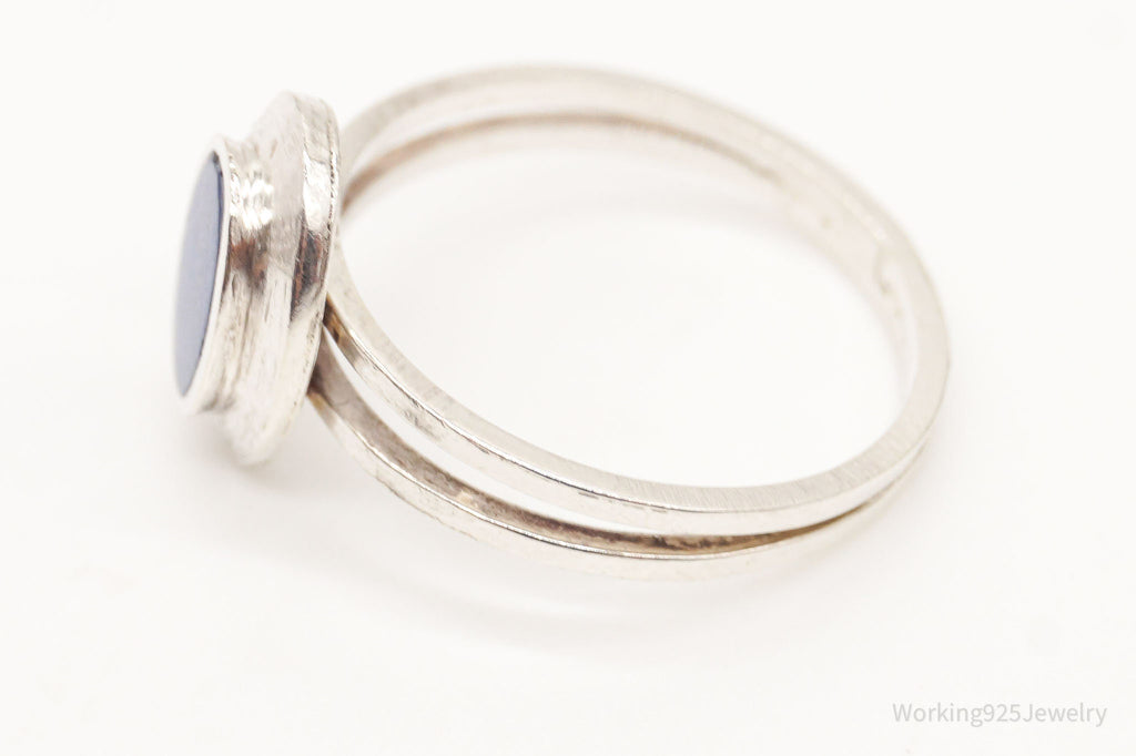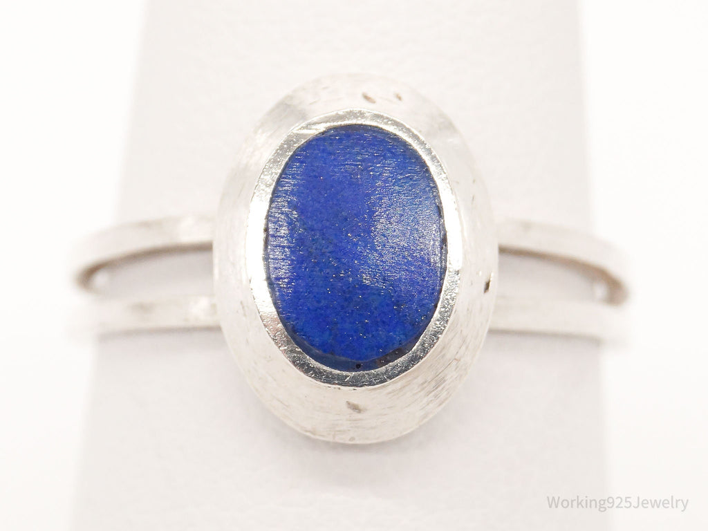 Vintage Lapis Lazuli Modernist Style Silver Ring - Size 7.5