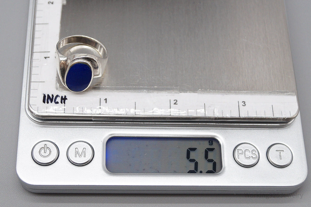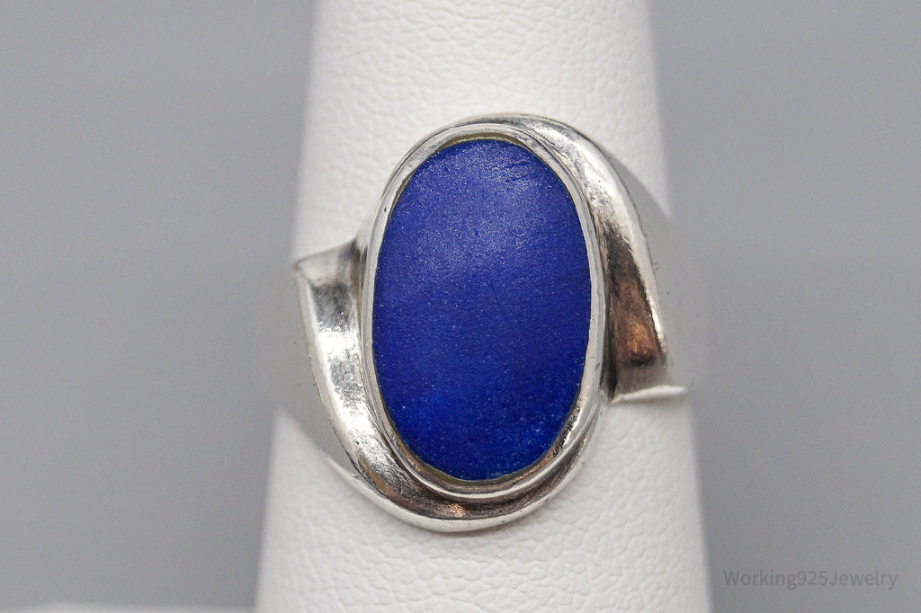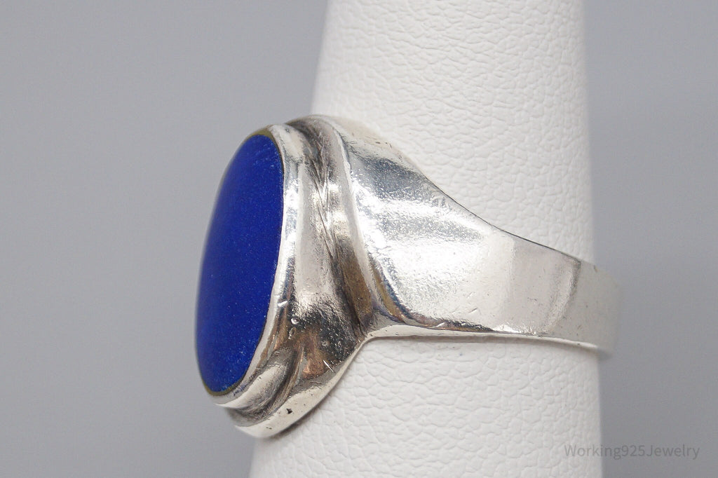 Vintage Lapis Lazuli Modernist Style Sterling Silver Ring - Size 6.5
