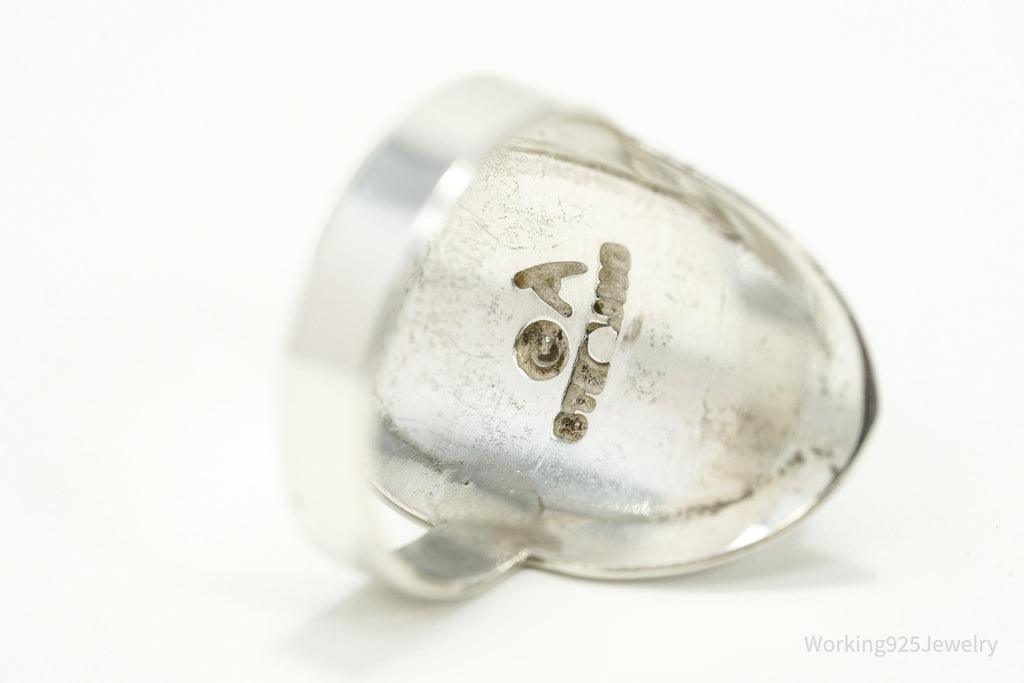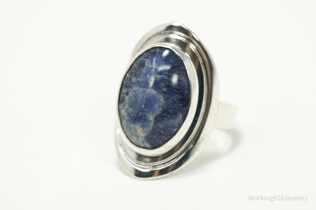 Vintage Lapis Lazuli Modernist Style Sterling Silver Ring - Size 8.5