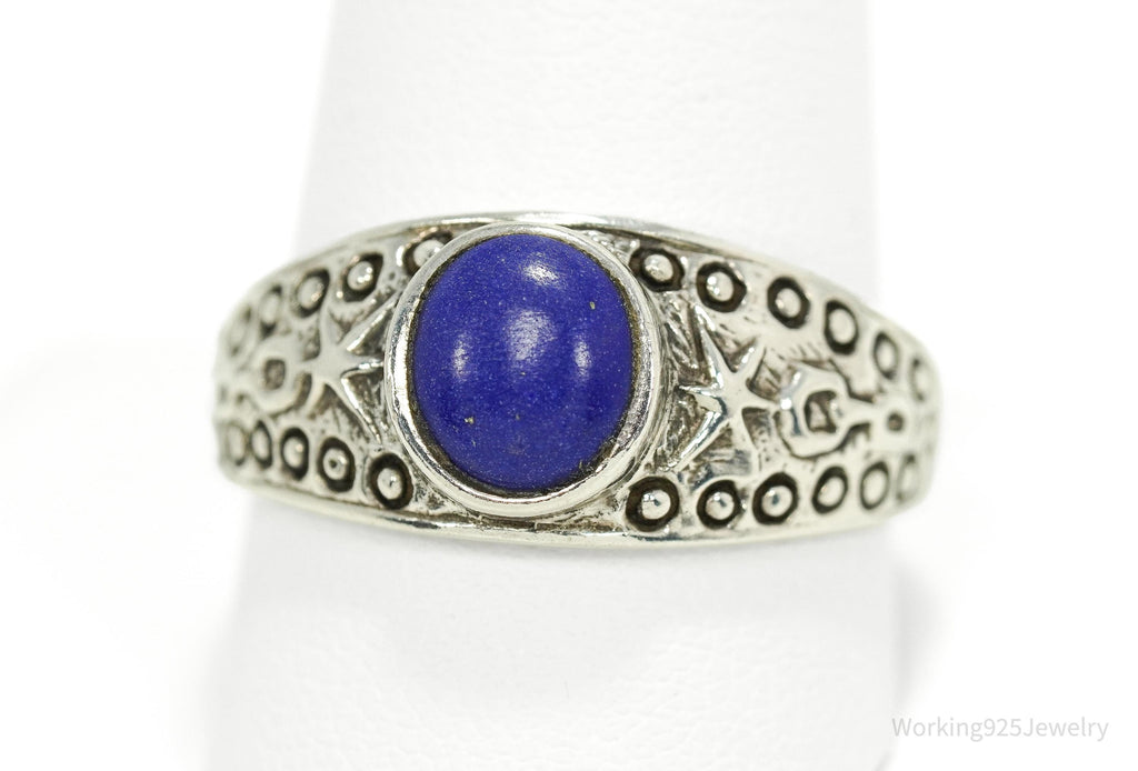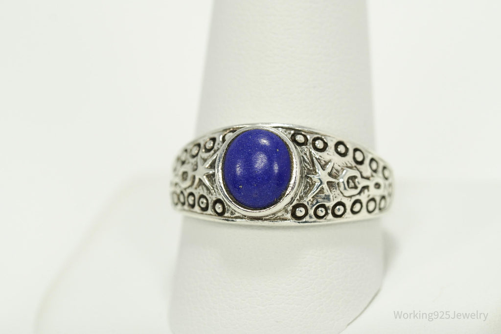 Vintage Lapis Lazuli Viking Style Sterling Silver Ring - Size 11.25