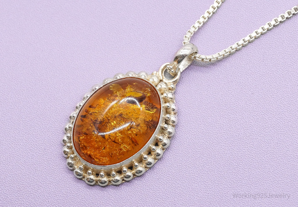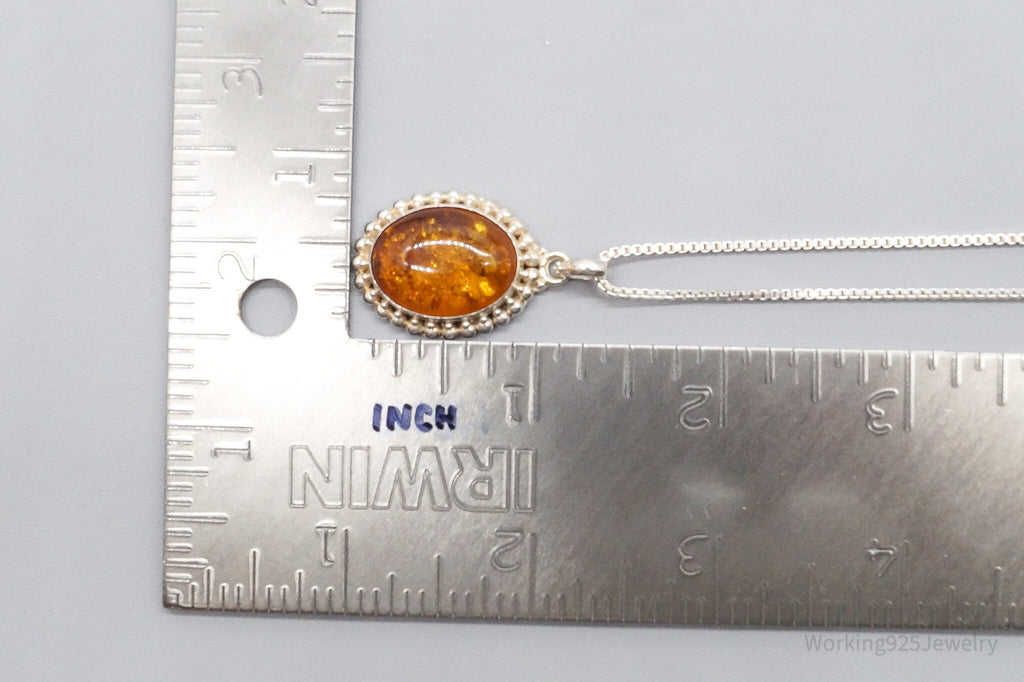 Vintage Large Amber Sterling Silver Chain Necklace 24"