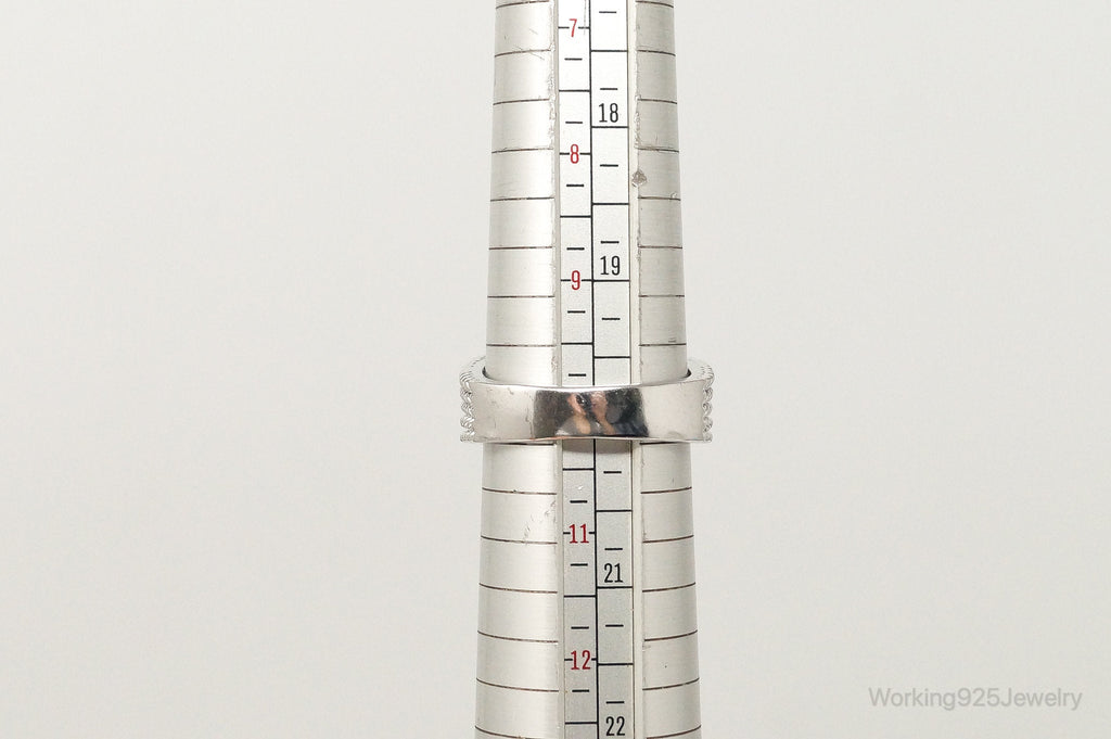 Ring Listings: It is sometimes difficult to determine how a ring will fit without being able to try it on. I always recommend taking your favorite ring to a local jeweler and comparing the way that it sits on a mandrel (ring sizer) with the pictures in the listings prior to purchase. Sometimes wide band rings fit a little differently and I always want my customers to be 100% happy with their purchases! Please let me know if I can help by offering more pictures for size comparison.