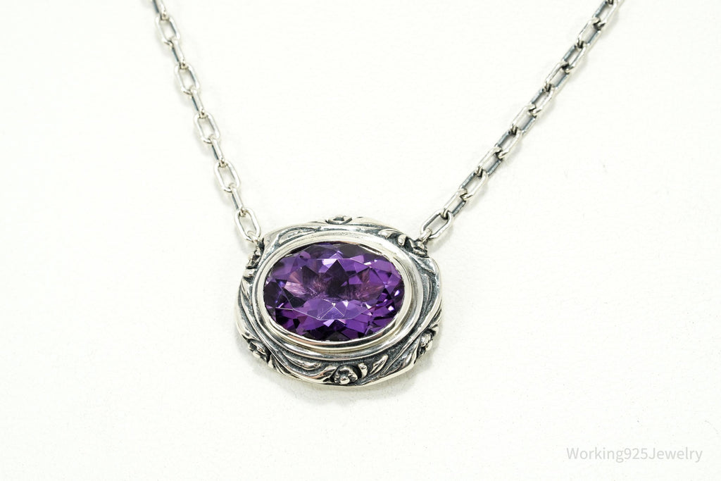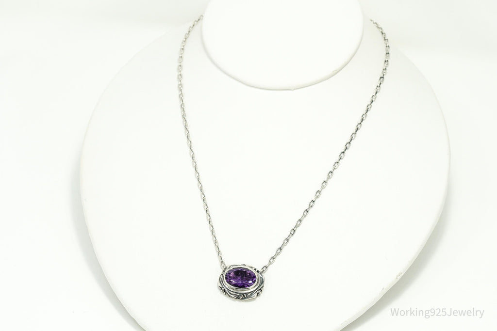 Vintage Large Amethyst Sterling Silver Necklace 17"