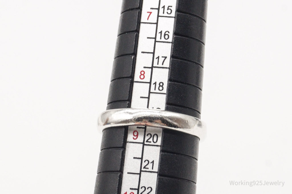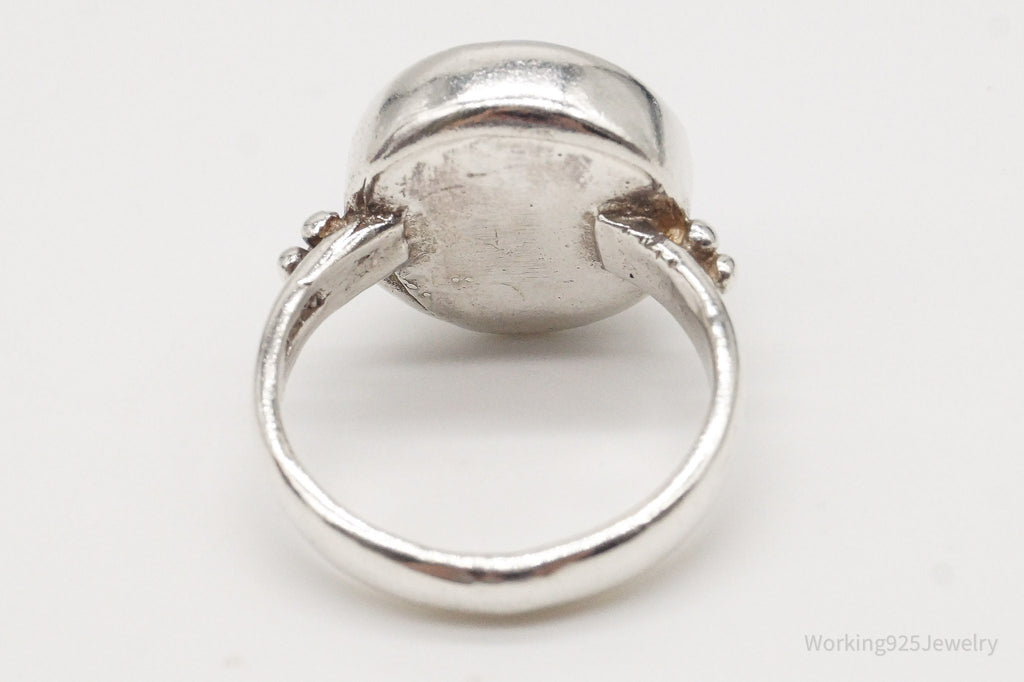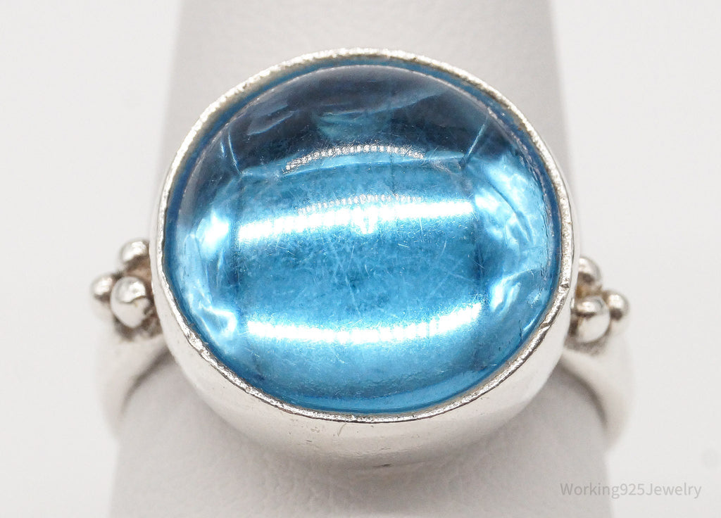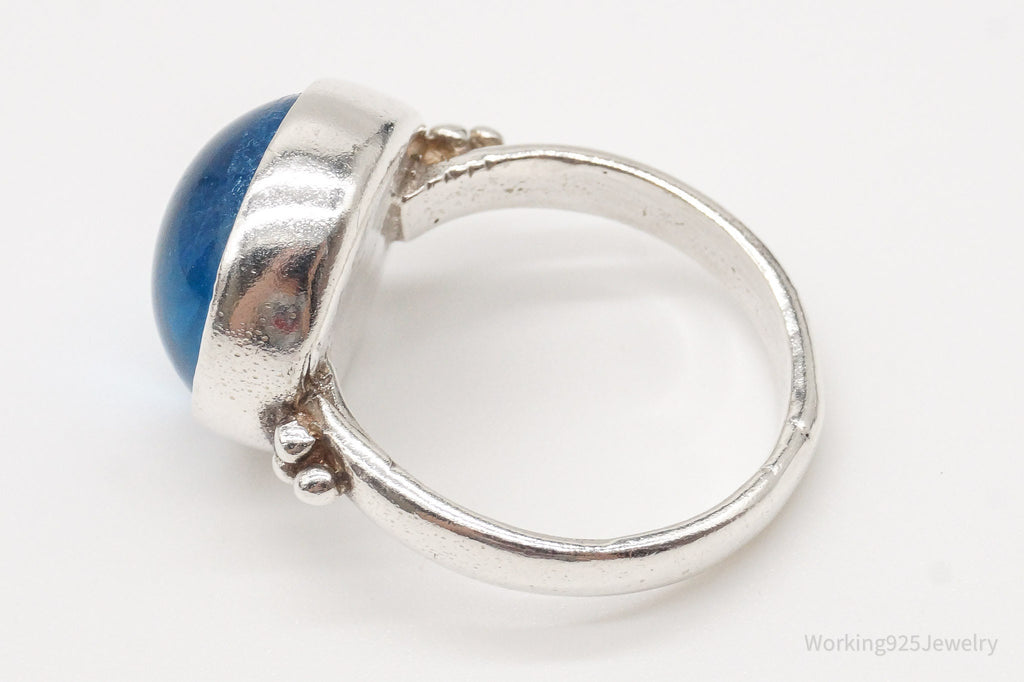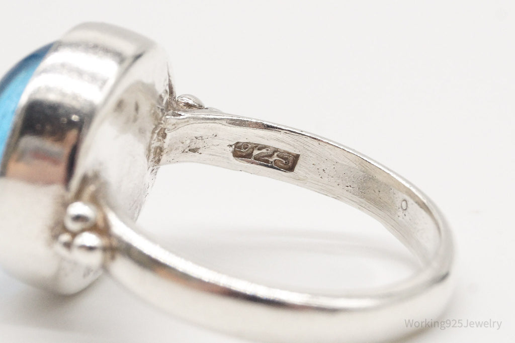 Vintage Large Blue Luminescent Faux Stone Sterling Silver Ring - Size 8.75