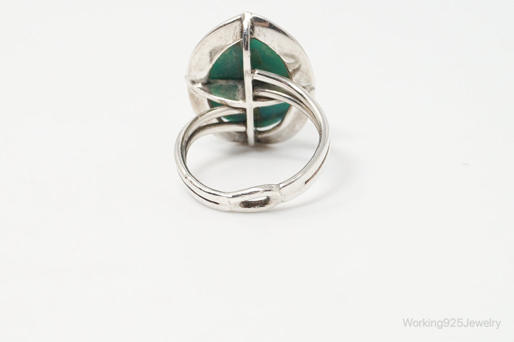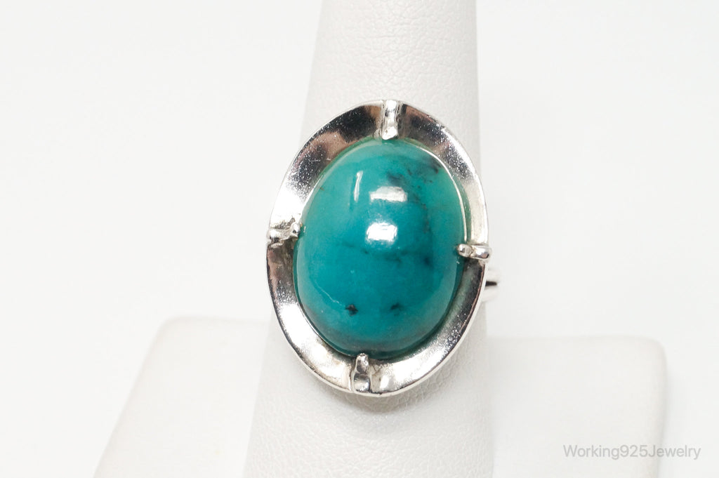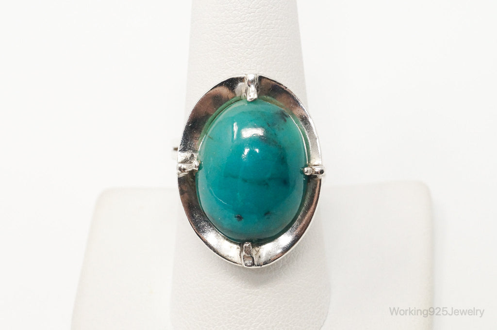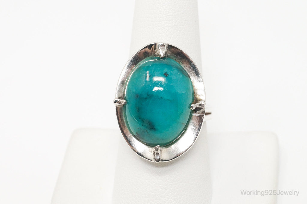 Vintage Large Blue Peruvian Opal Sterling Silver Statement Ring - Size 9.5