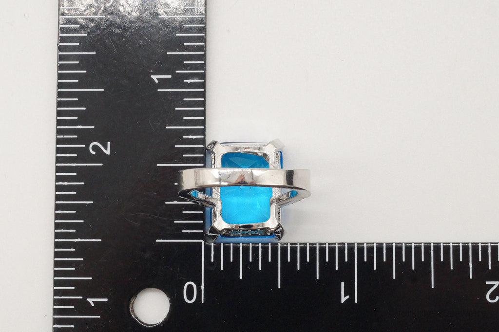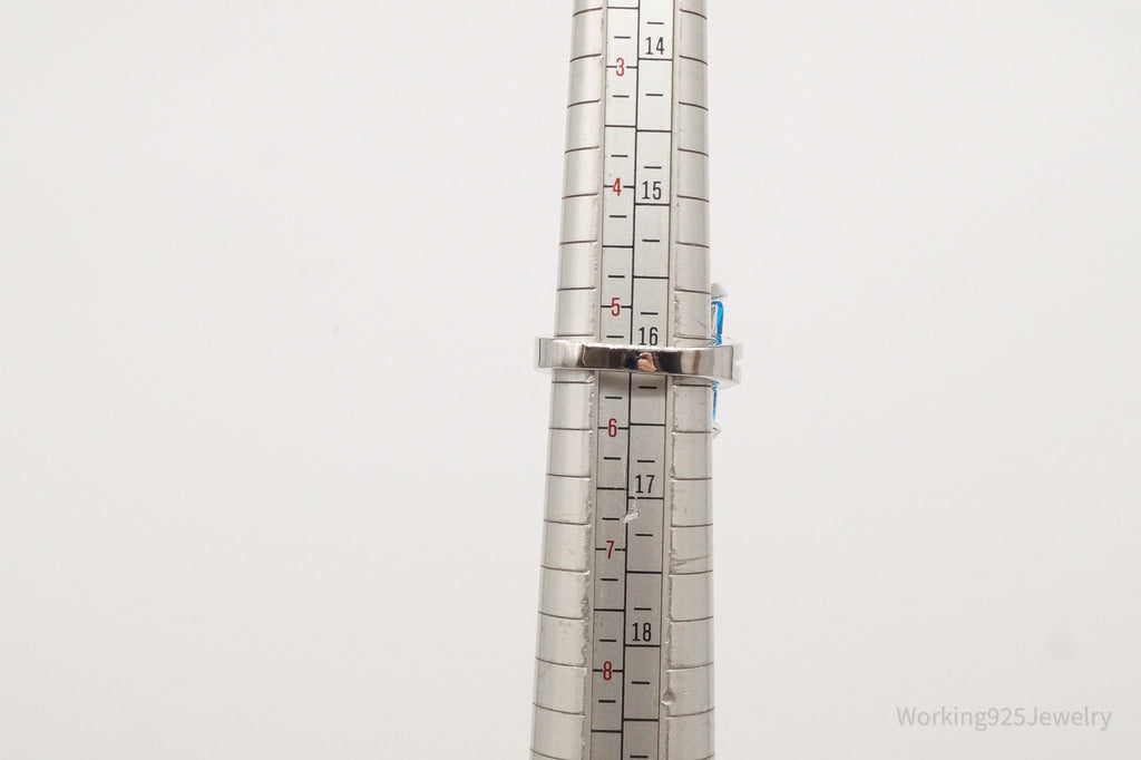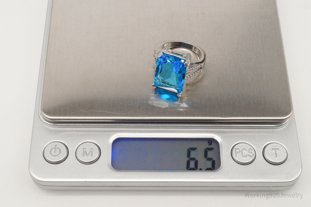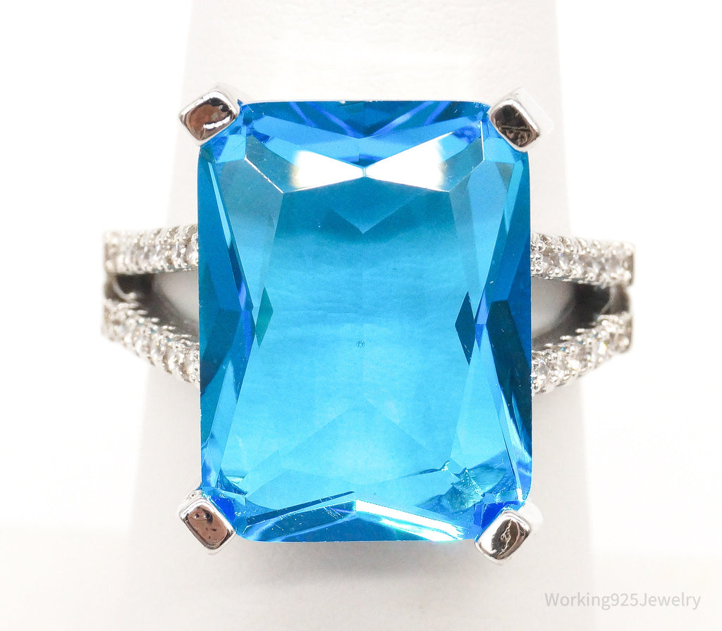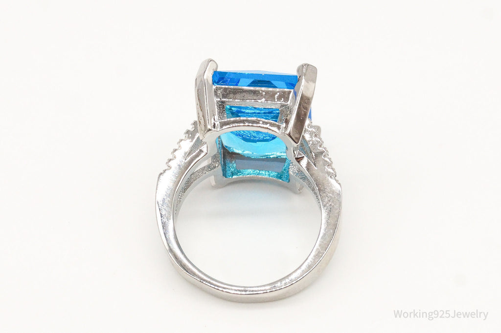 Vintage Large Blue Topaz Cubic Zirconia Sterling Silver Ring - Size 5.5