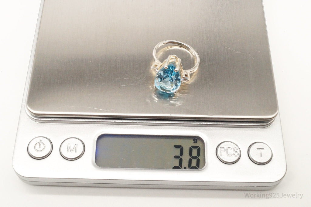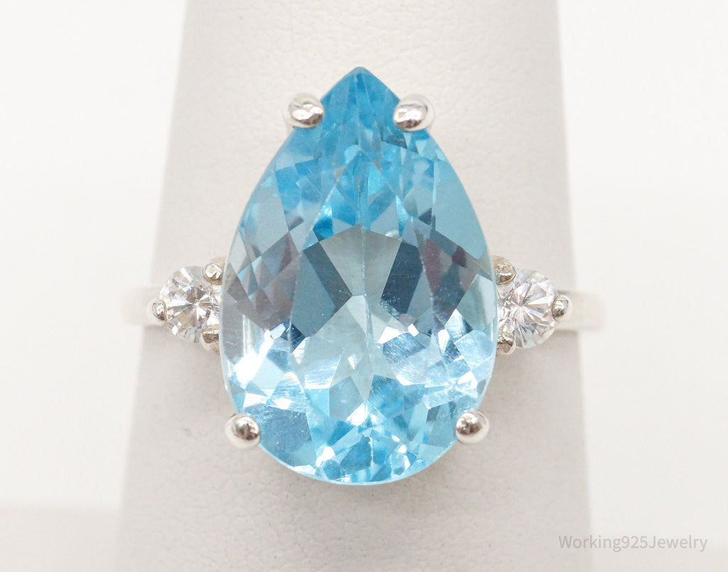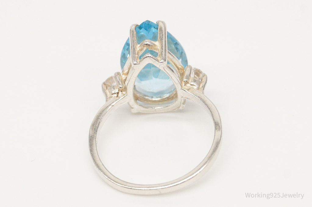 Vintage Large Blue Topaz Cubic Zirconia Sterling Silver Ring Size 6.75