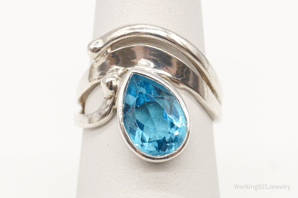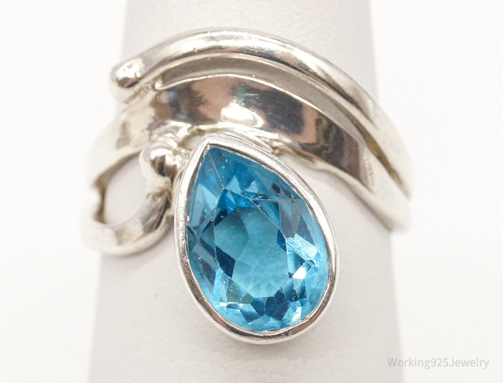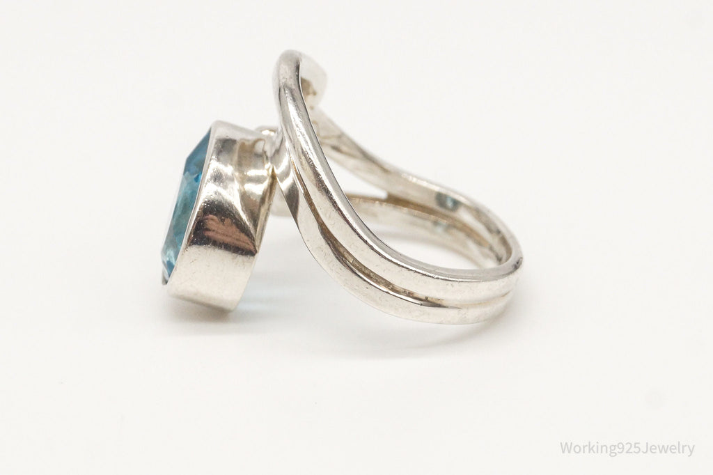 Vintage Large Blue Topaz Gemstone Sterling Silver Ring - Size 4.75