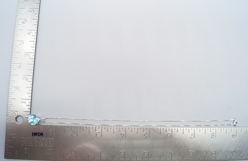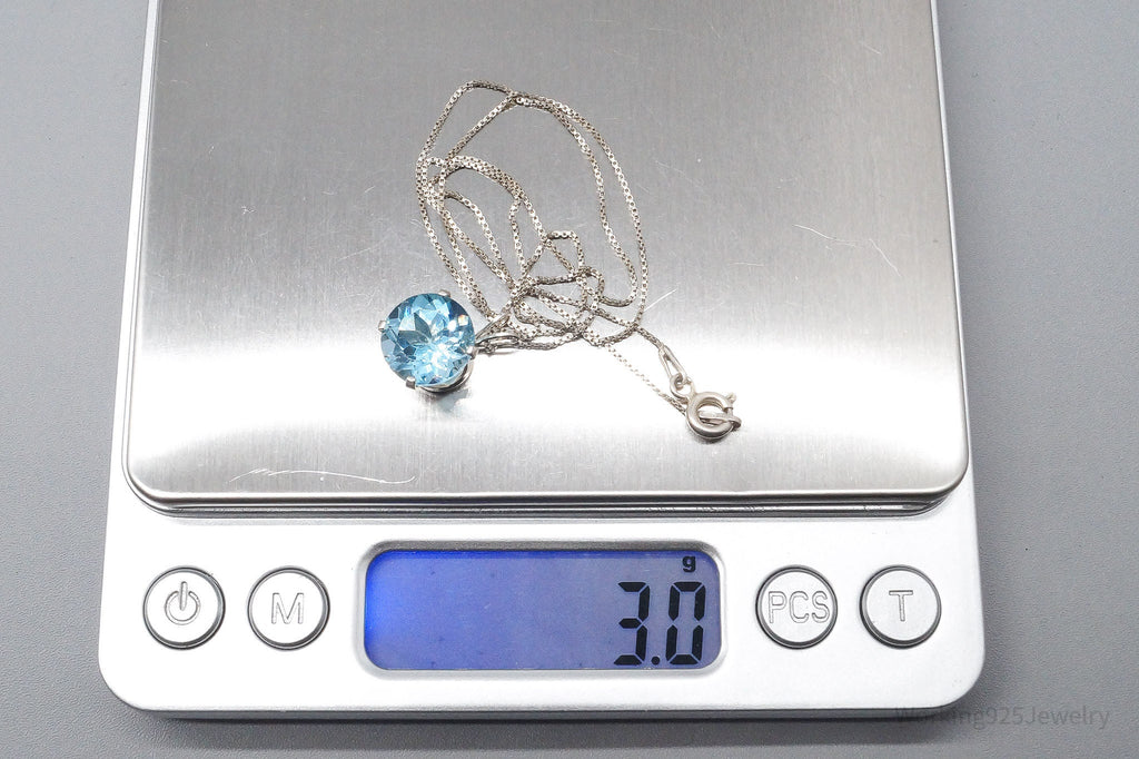 Vintage Large Blue Topaz Sterling Silver Necklace 17"