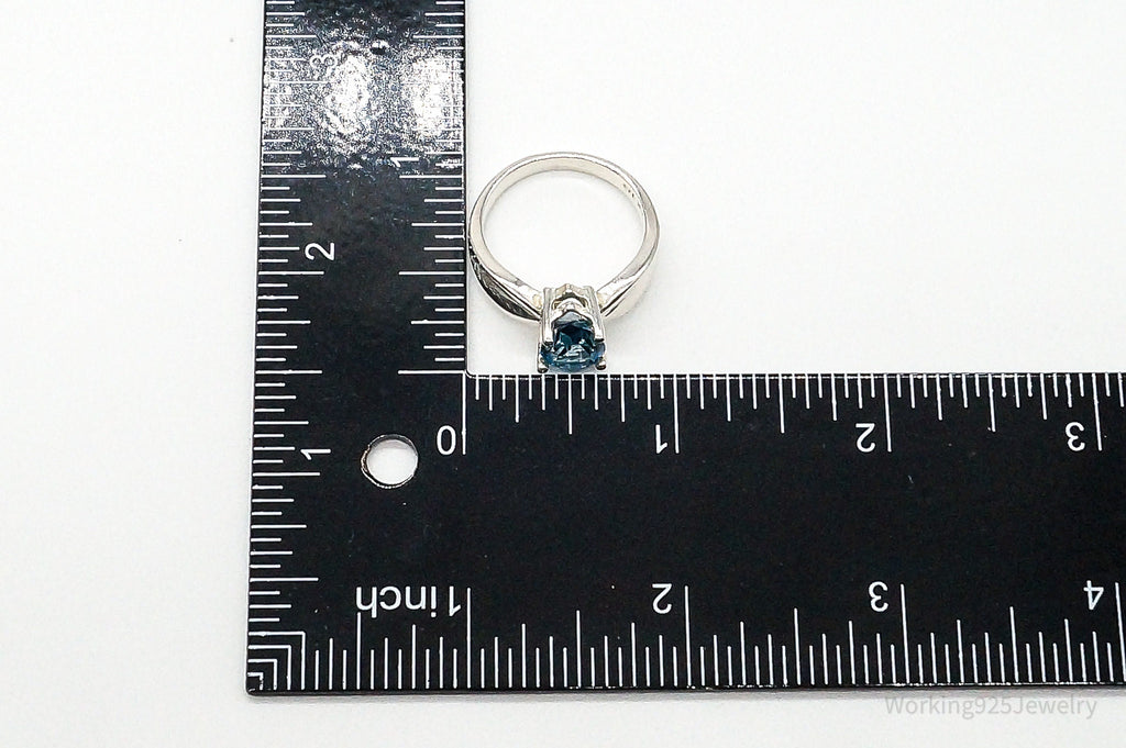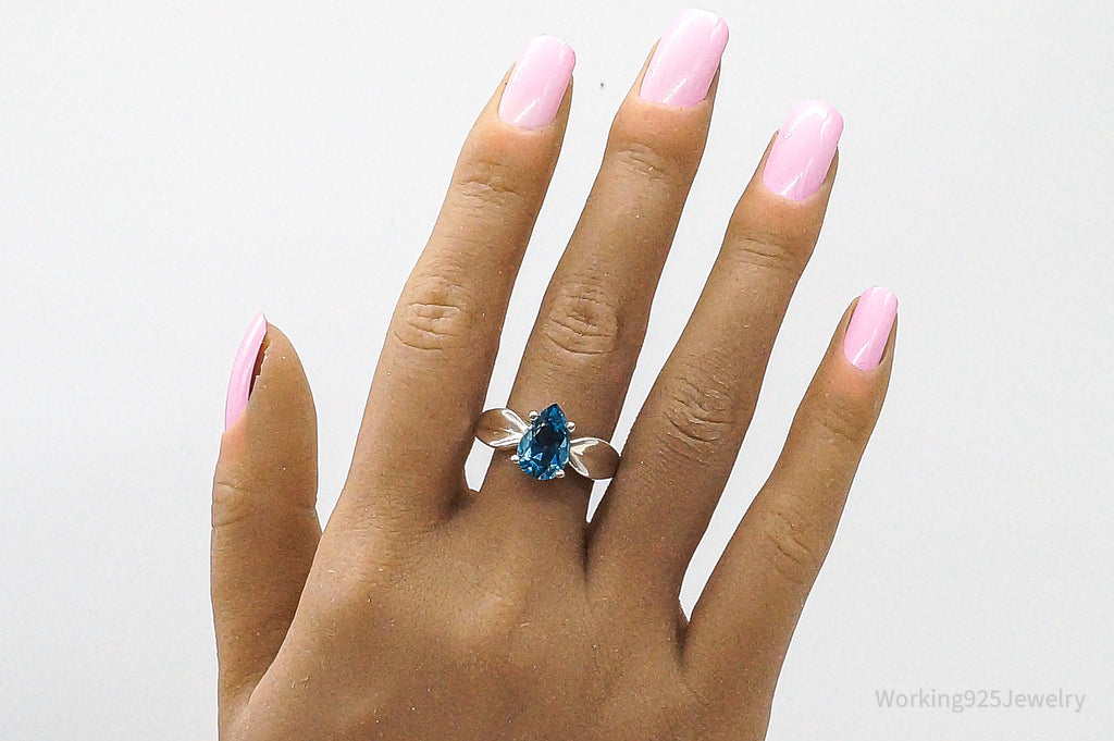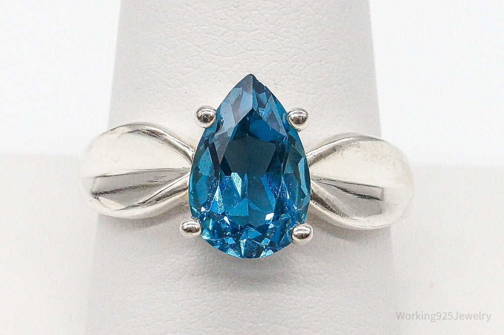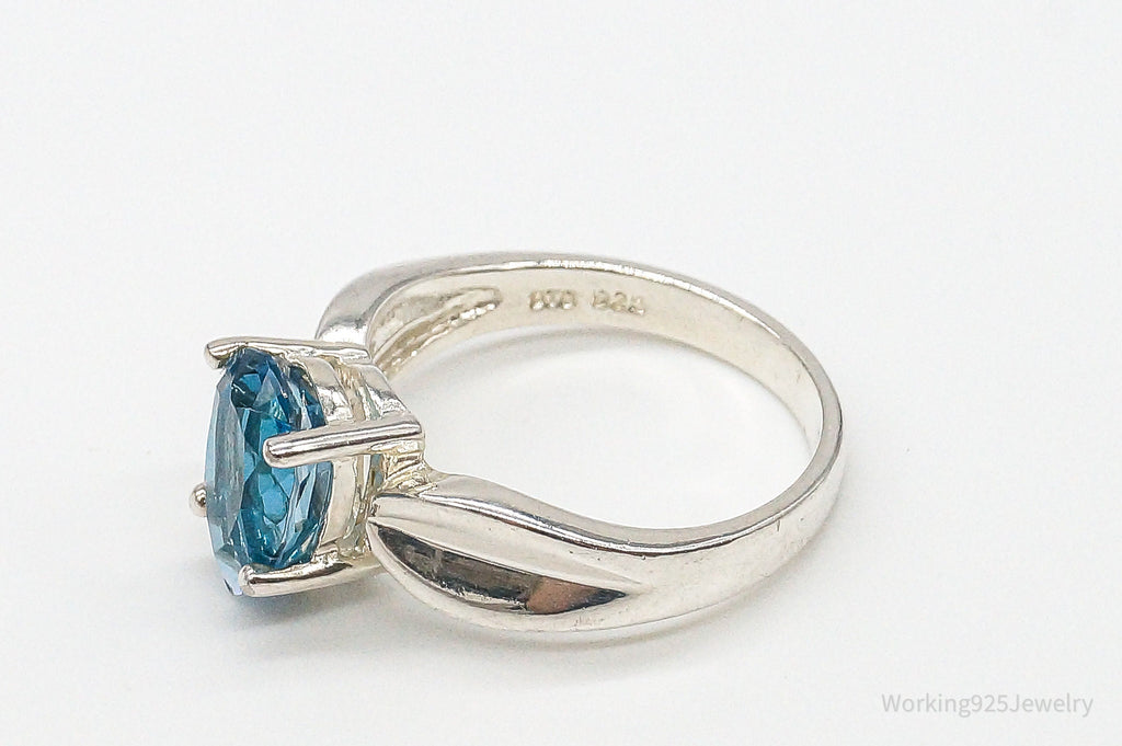 Vintage Large Blue Topaz Sterling Silver Ring - Size 10