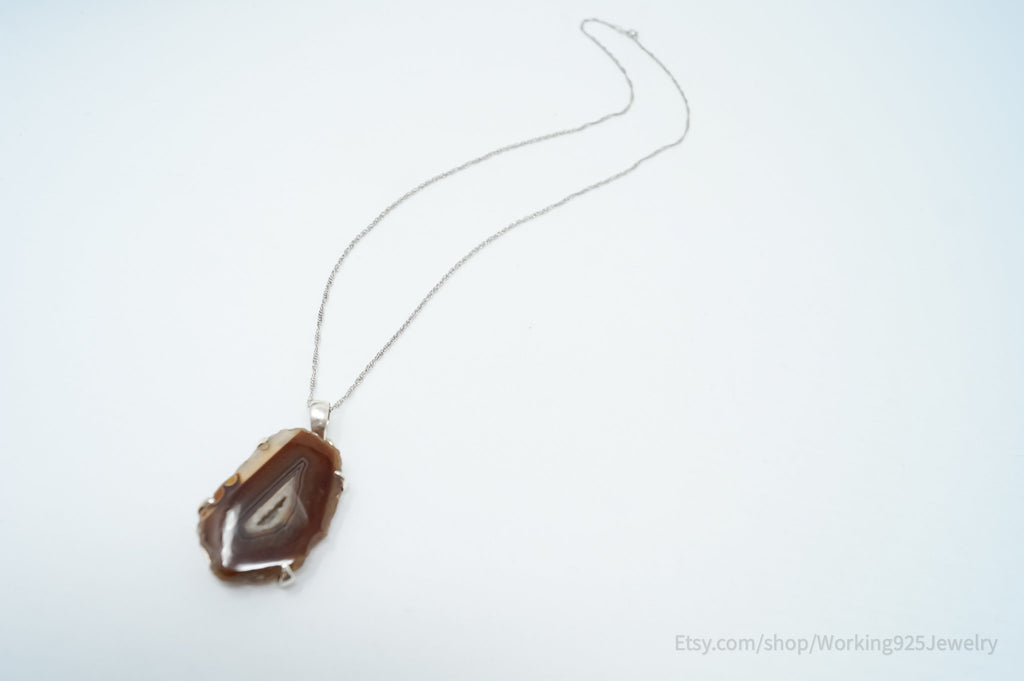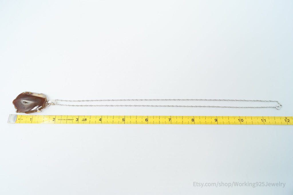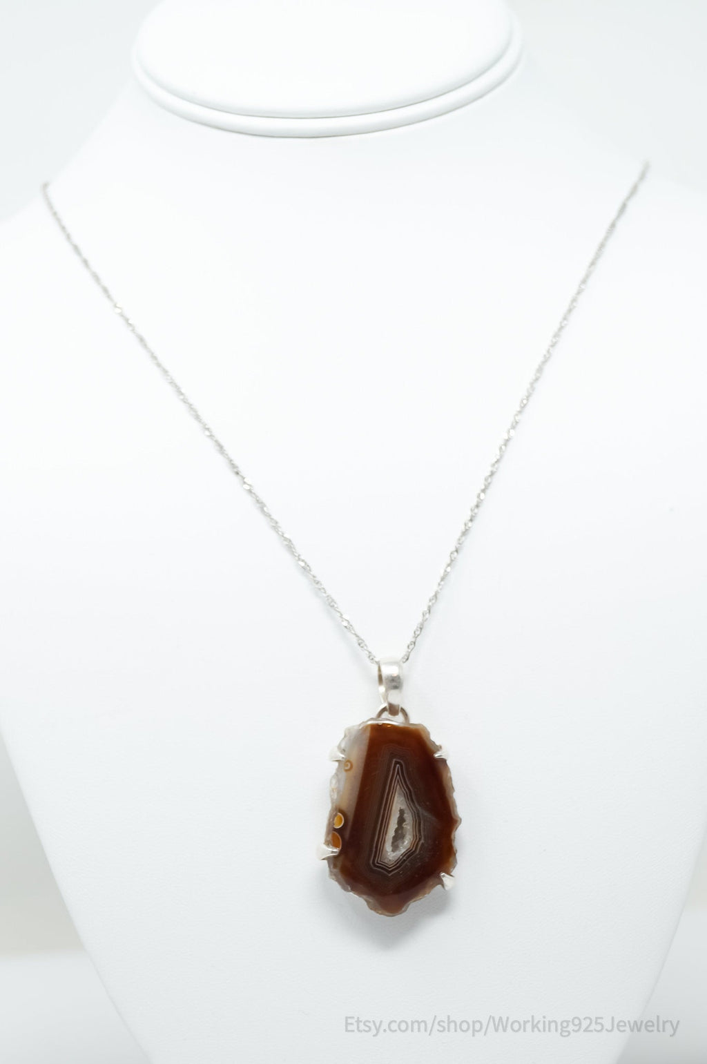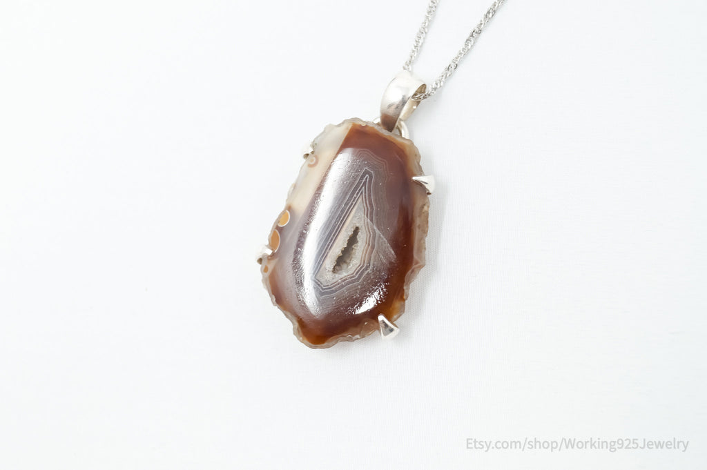 Vintage Large Brown Crazy Lace Agate Sterling Silver Necklace