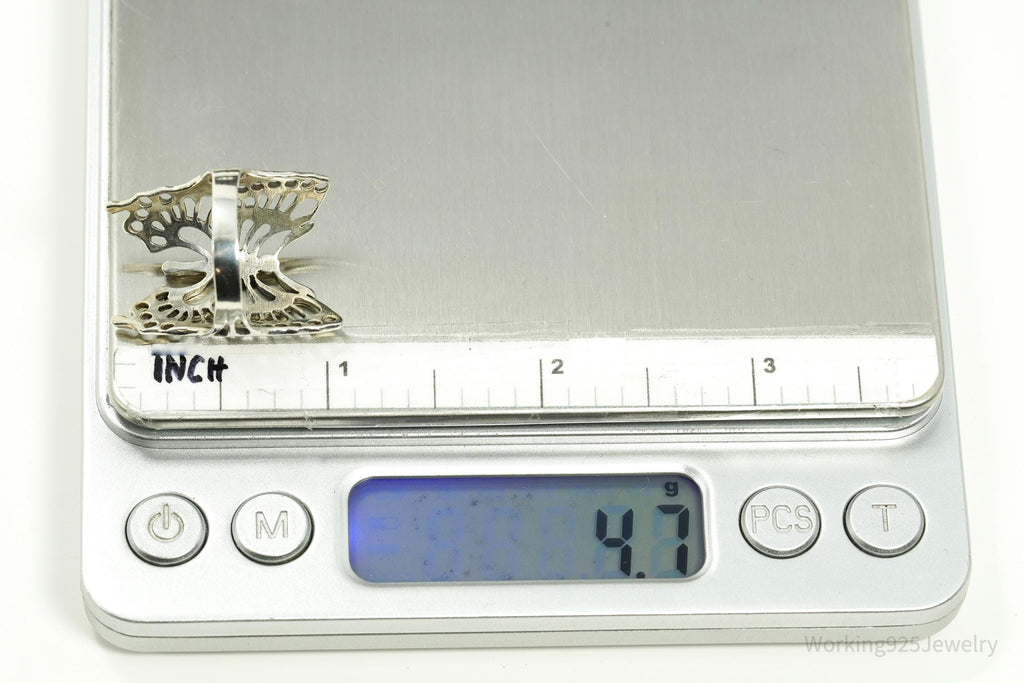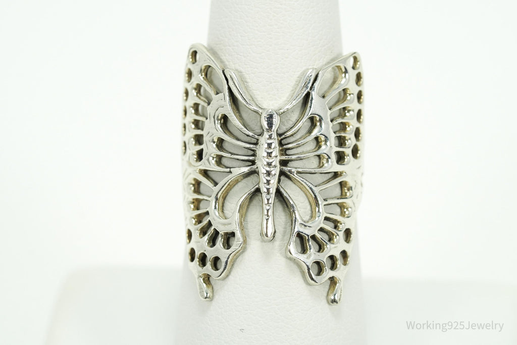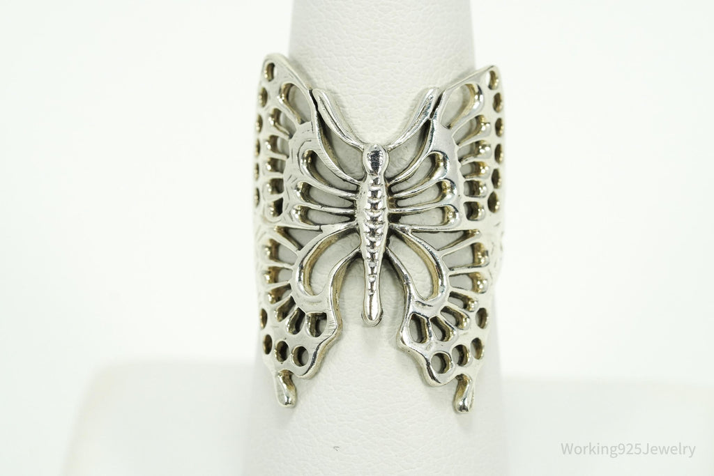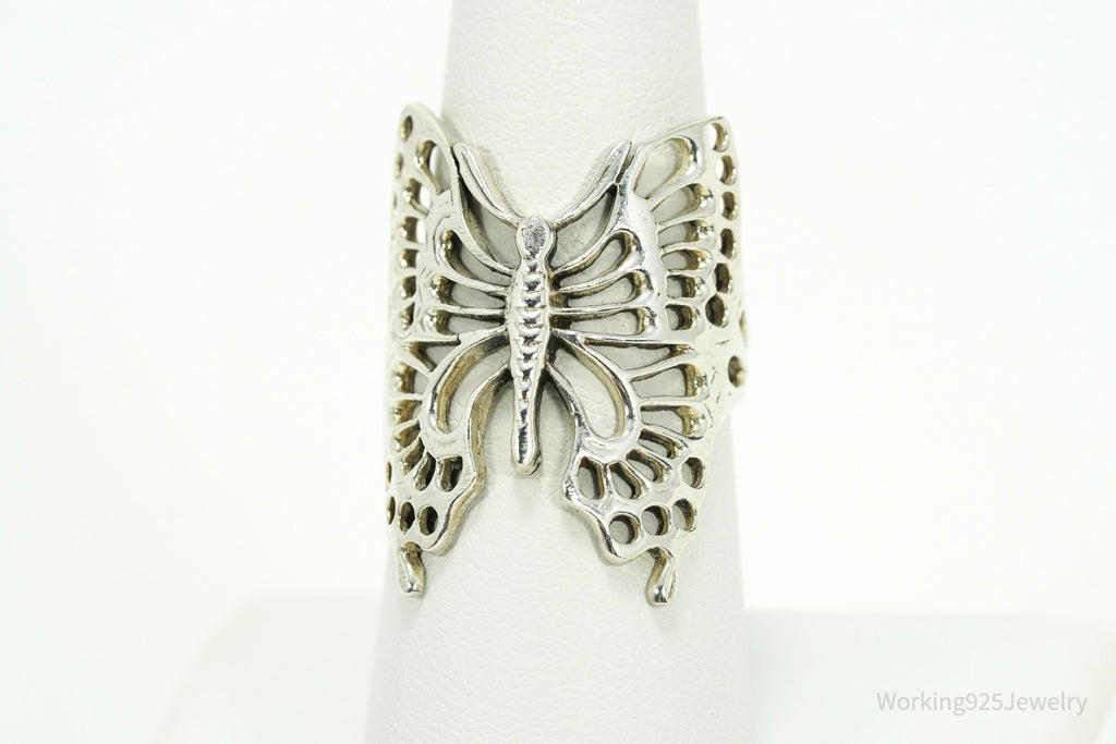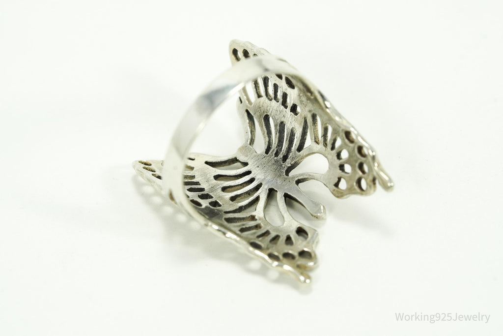 Vintage Large Butterfly Sterling Silver Ring - Size 7.75