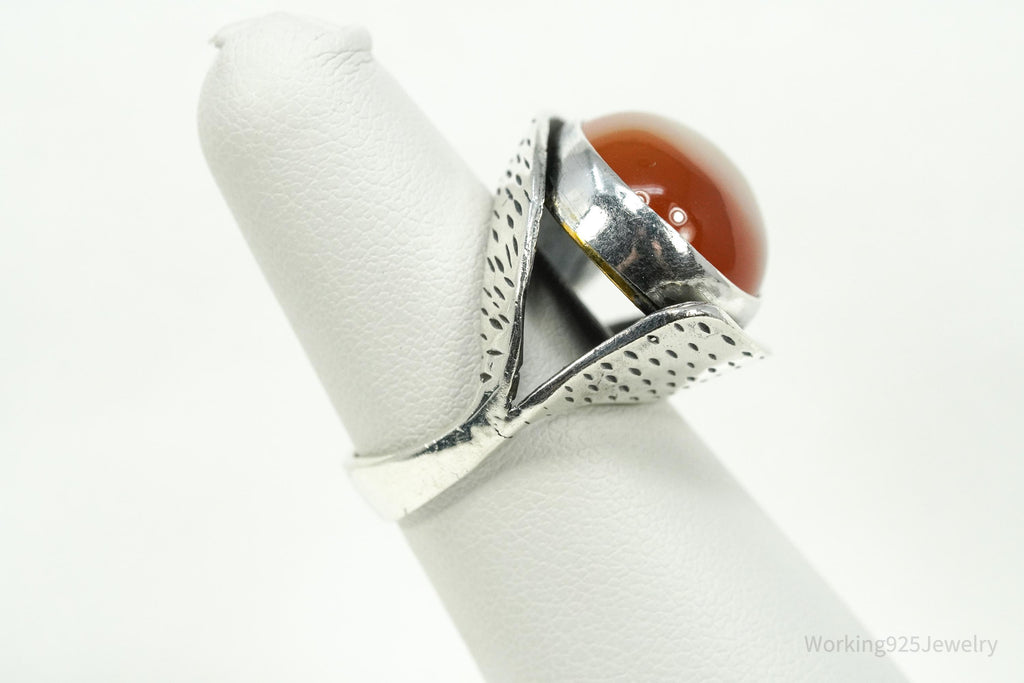 Vintage Large Carnelian Modernist Style Sterling Silver Ring - Size 6.25
