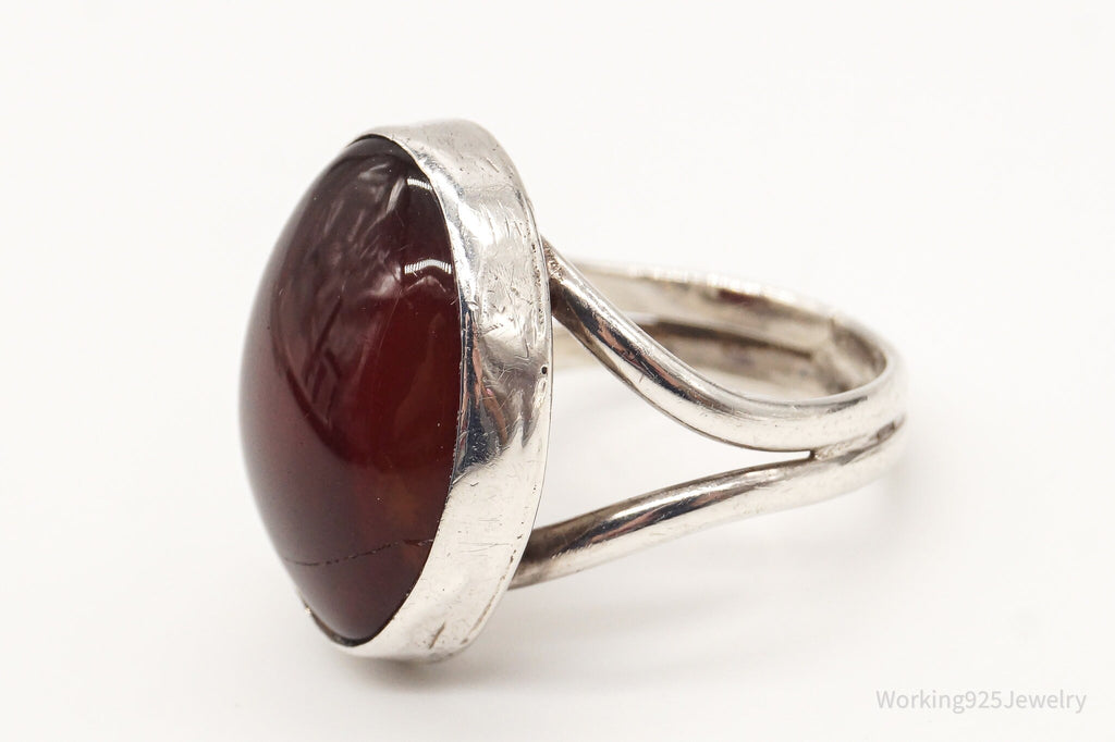 Vintage Large Carnelian Sterling Silver Ring - Size 5.25