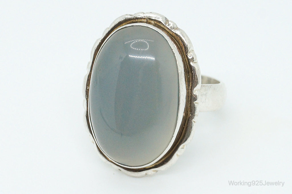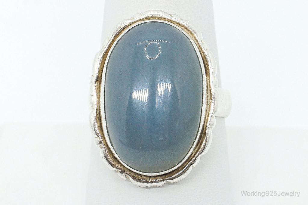 Vintage Large Chalcedony Sterling Silver Ring - Size 8.5