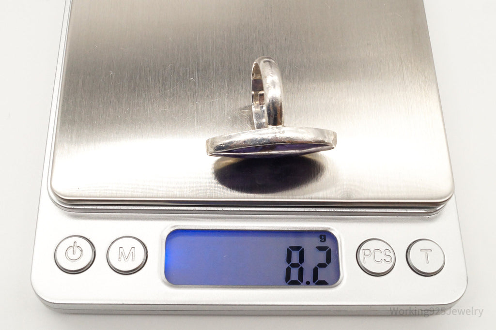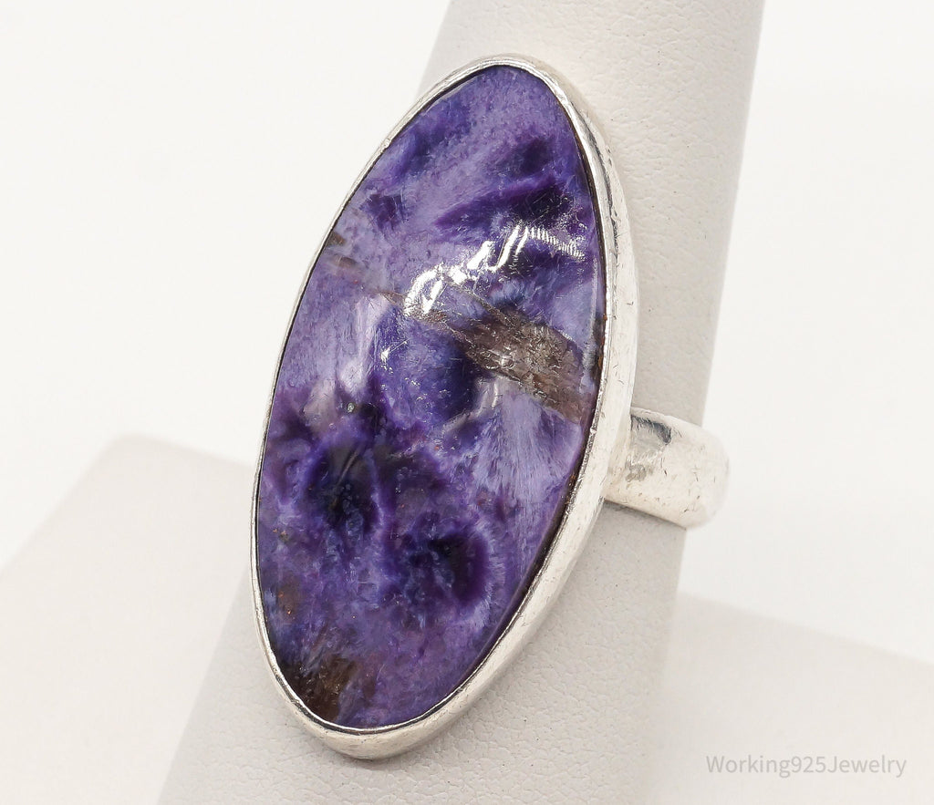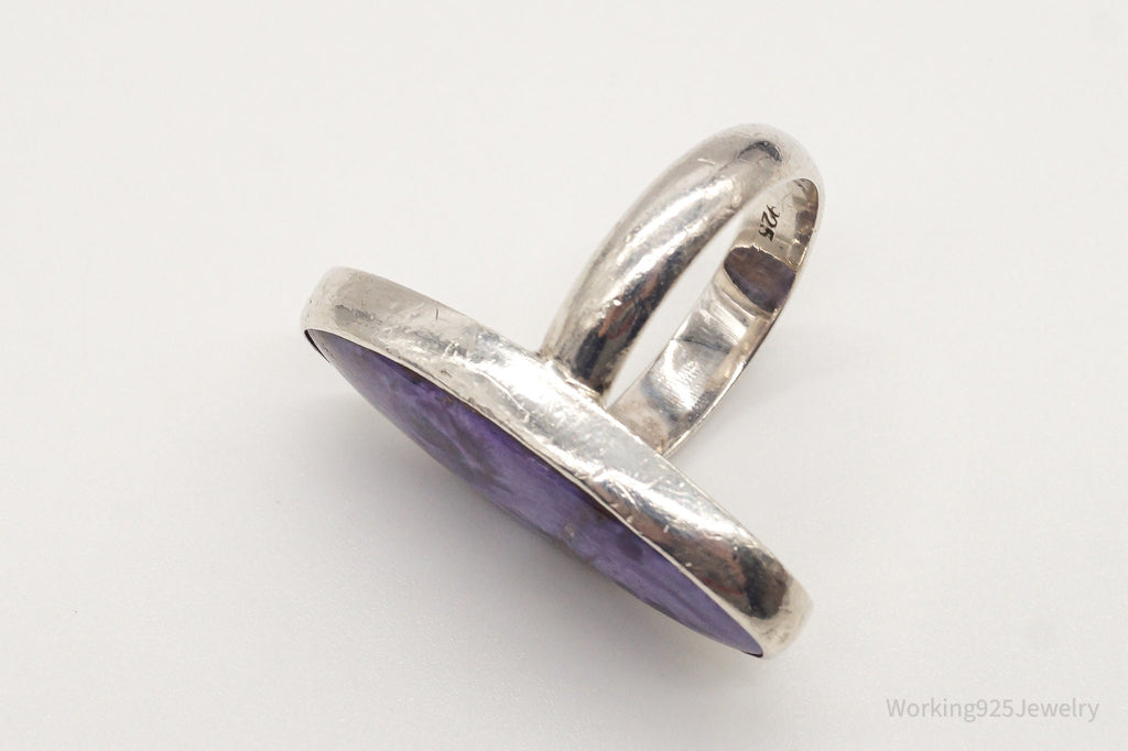Vintage Large Charoite Sterling Silver Ring - Size 8.25