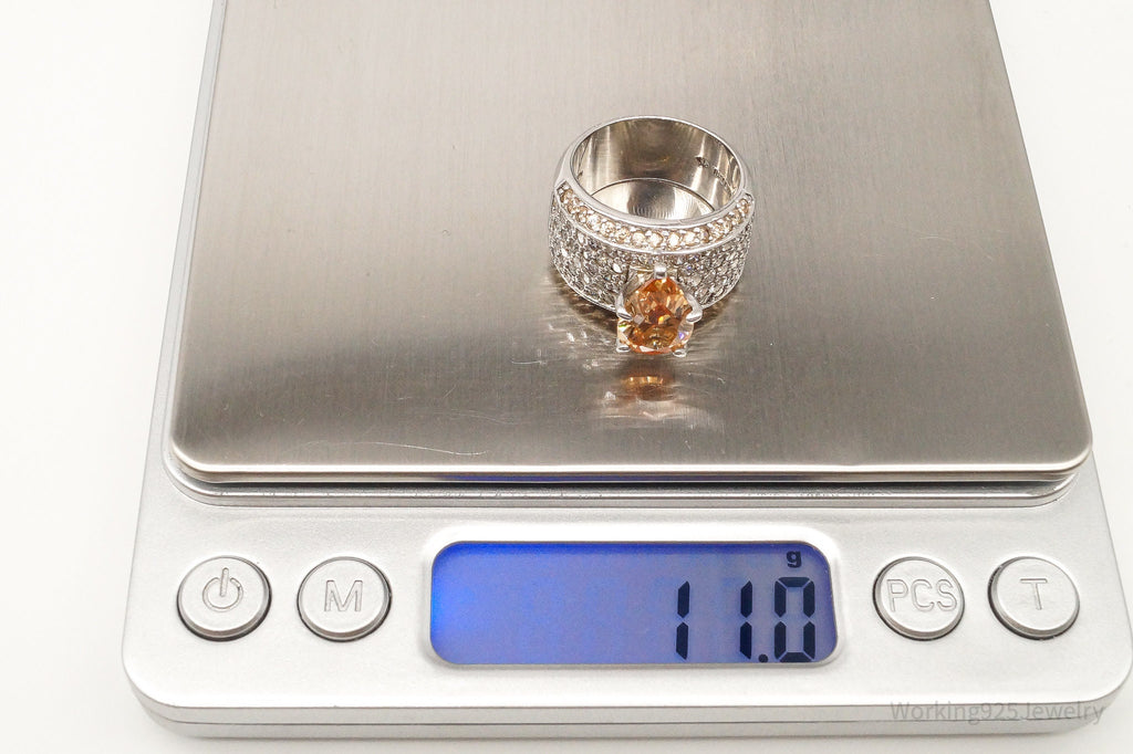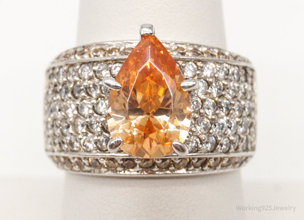Vintage Large Citrine Cubic Zirconia Sterling Silver Ring - Size 8