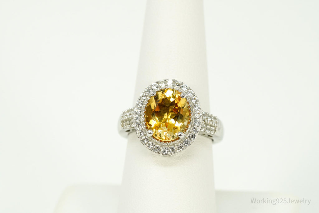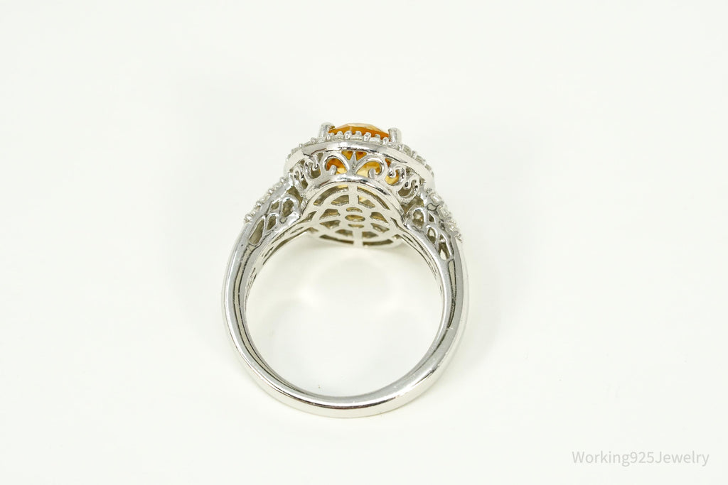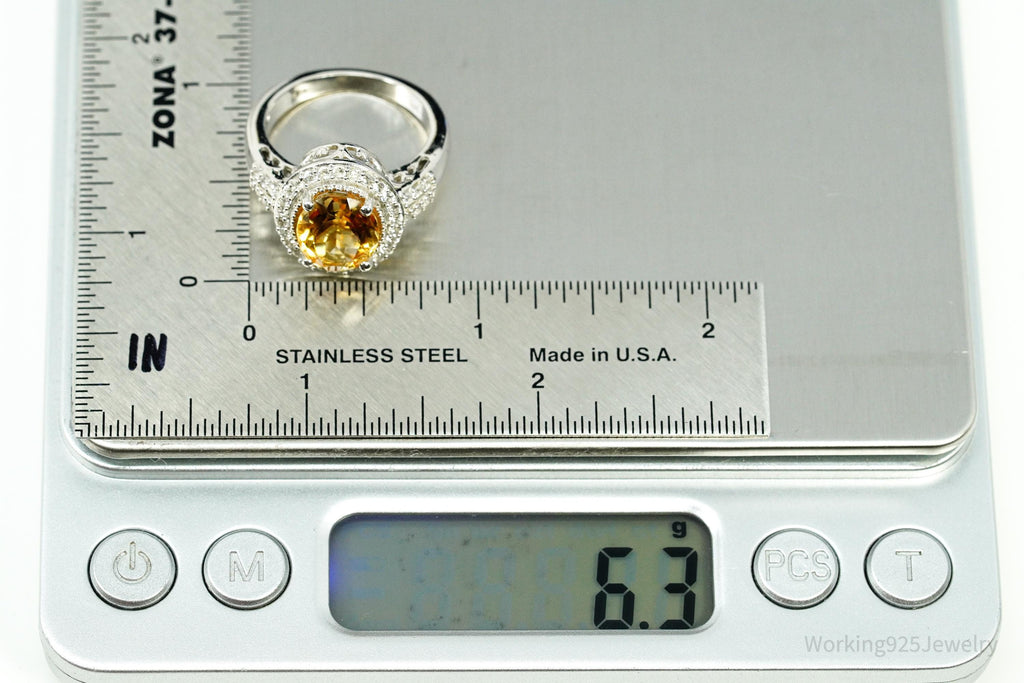 Vintage Large Citrine & Cubic Zirconia Sterling Silver Statement Ring - Size 8