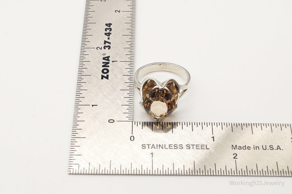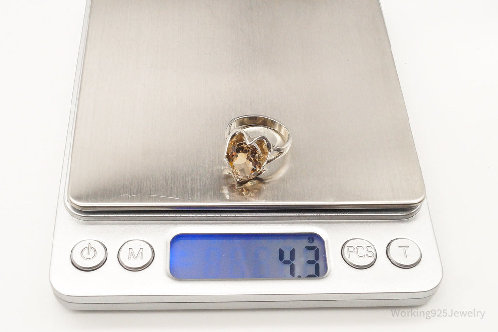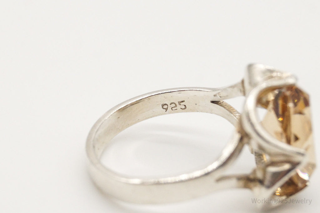 Vintage Large Citrine Southwestern Sterling Silver Ring - Size 6.25