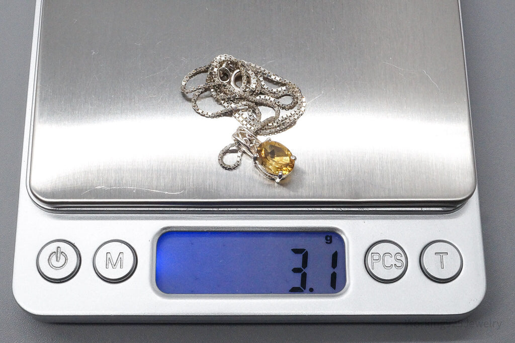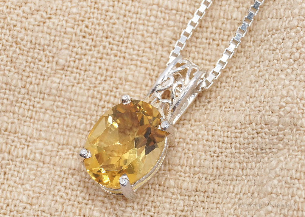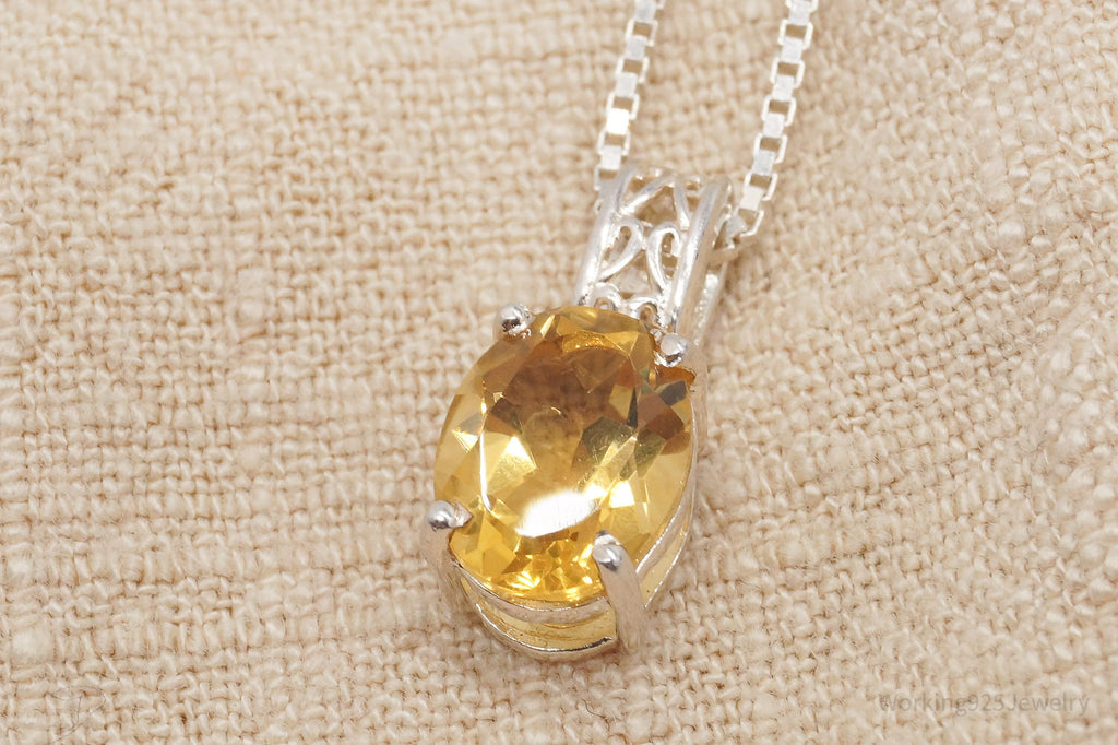 Vintage Large Citrine Sterling Silver Necklace 16"