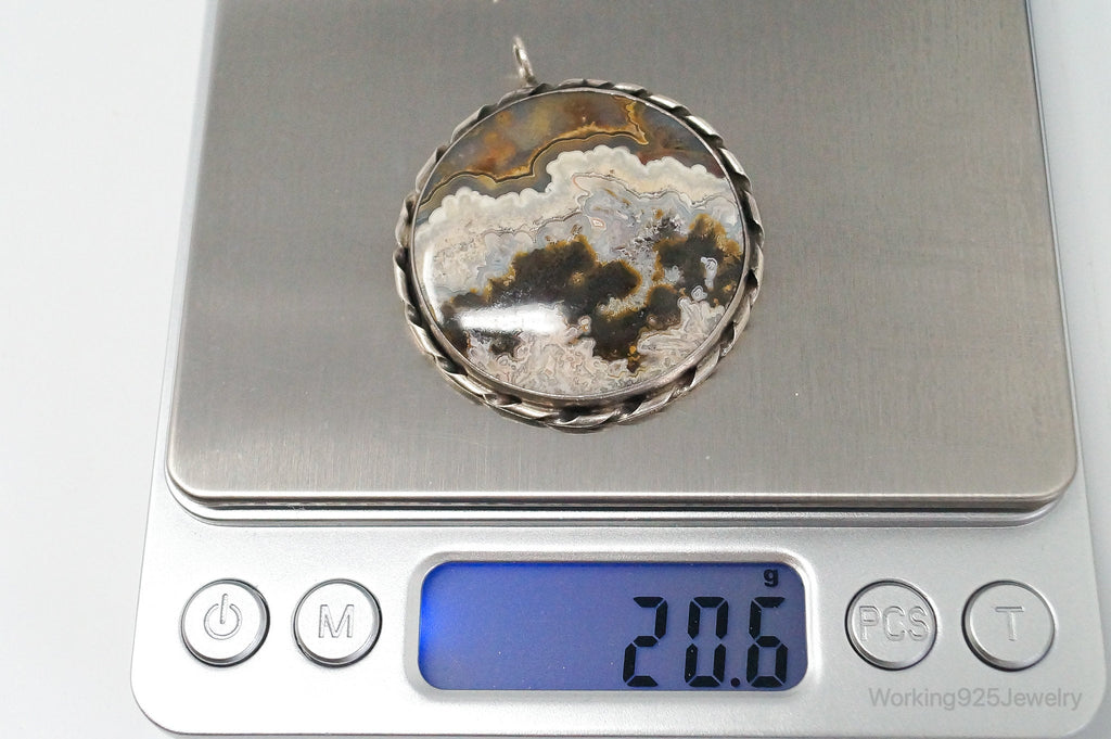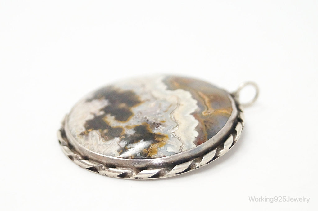 Vintage Large Crazy Lace Agate Sterling Silver Necklace Pendant