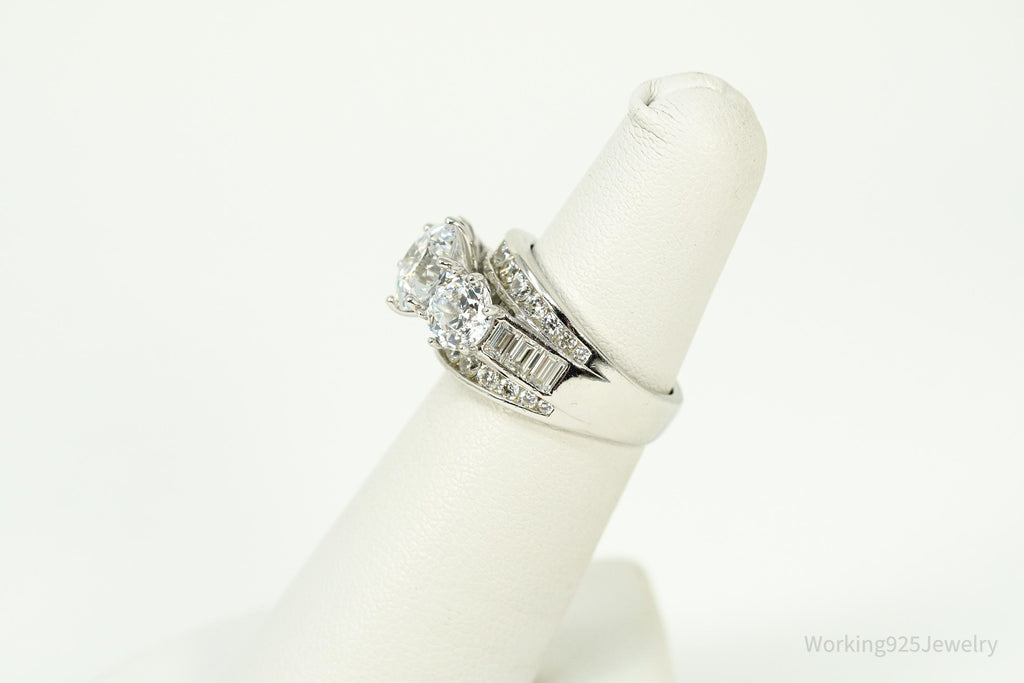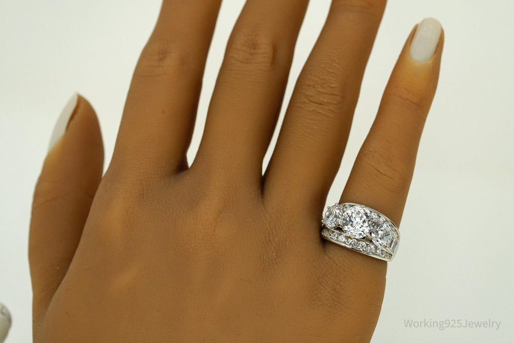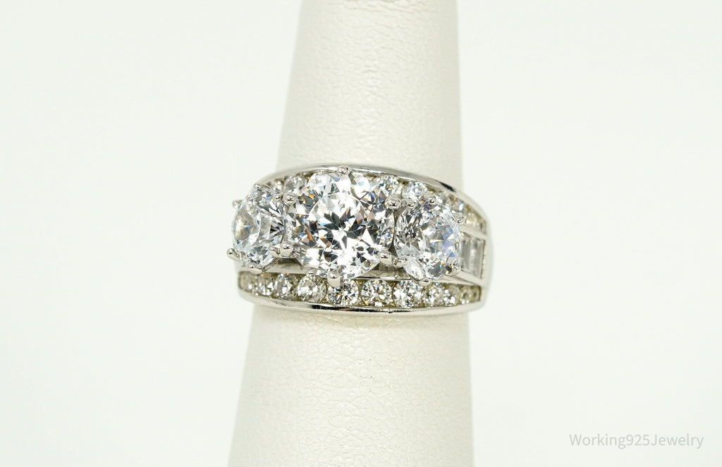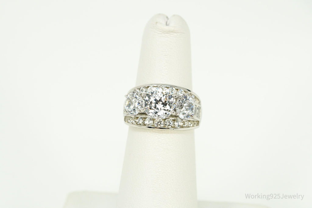 Vintage Large Cubic Zirconia Sterling Silver Ring - Size 5.25