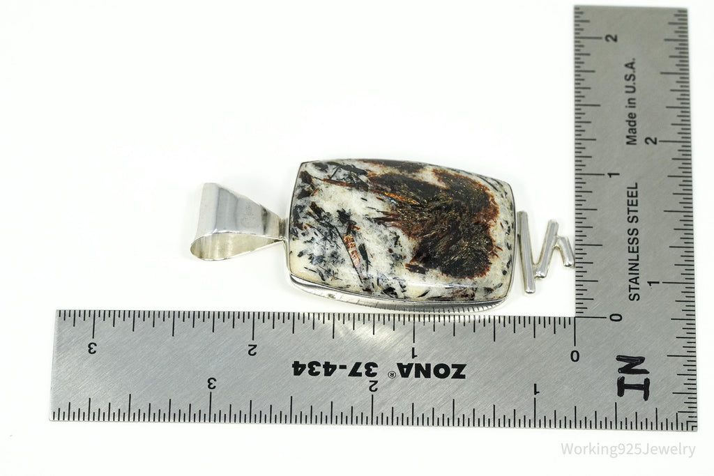 Vintage Large Desert Rose Trading Astrophyllite Sterling Silver Pendant 2 3/8"