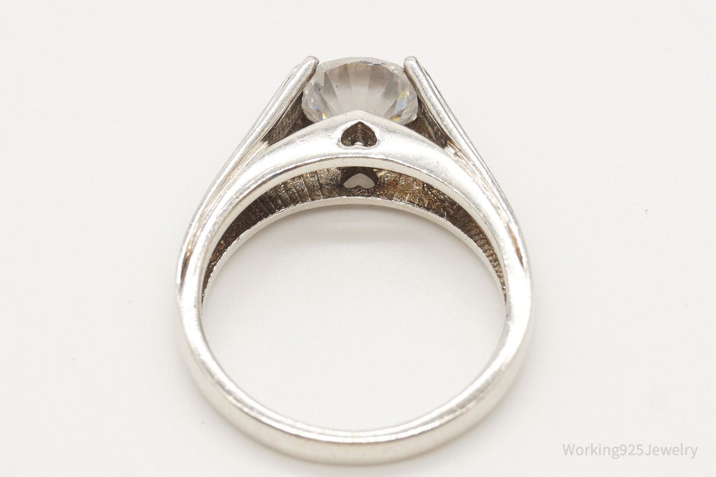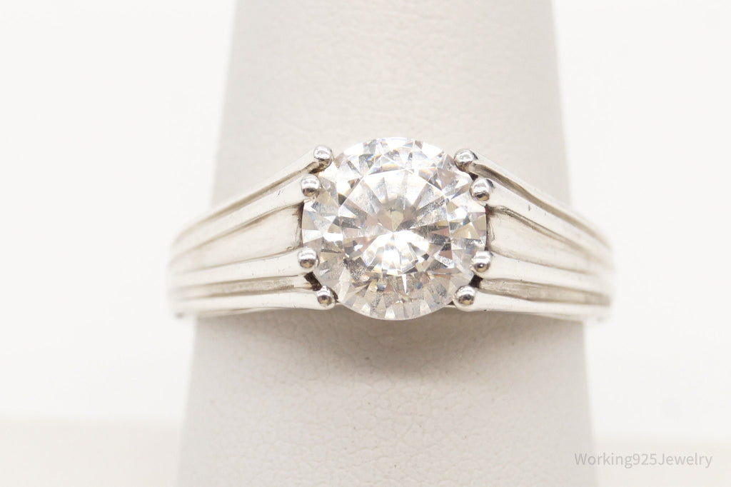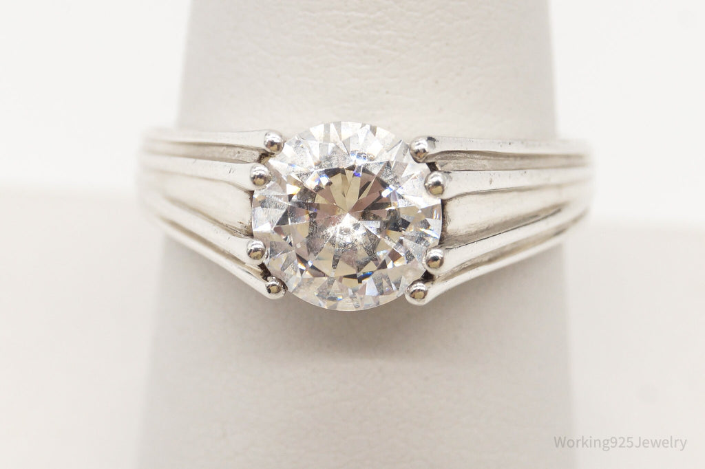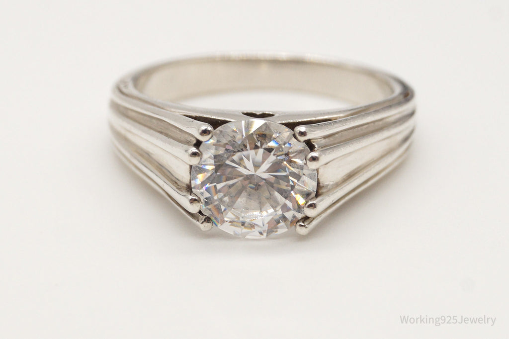 Vintage Large Diamonique DQCZ Sterling Silver Ring - Size 8