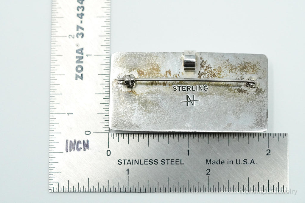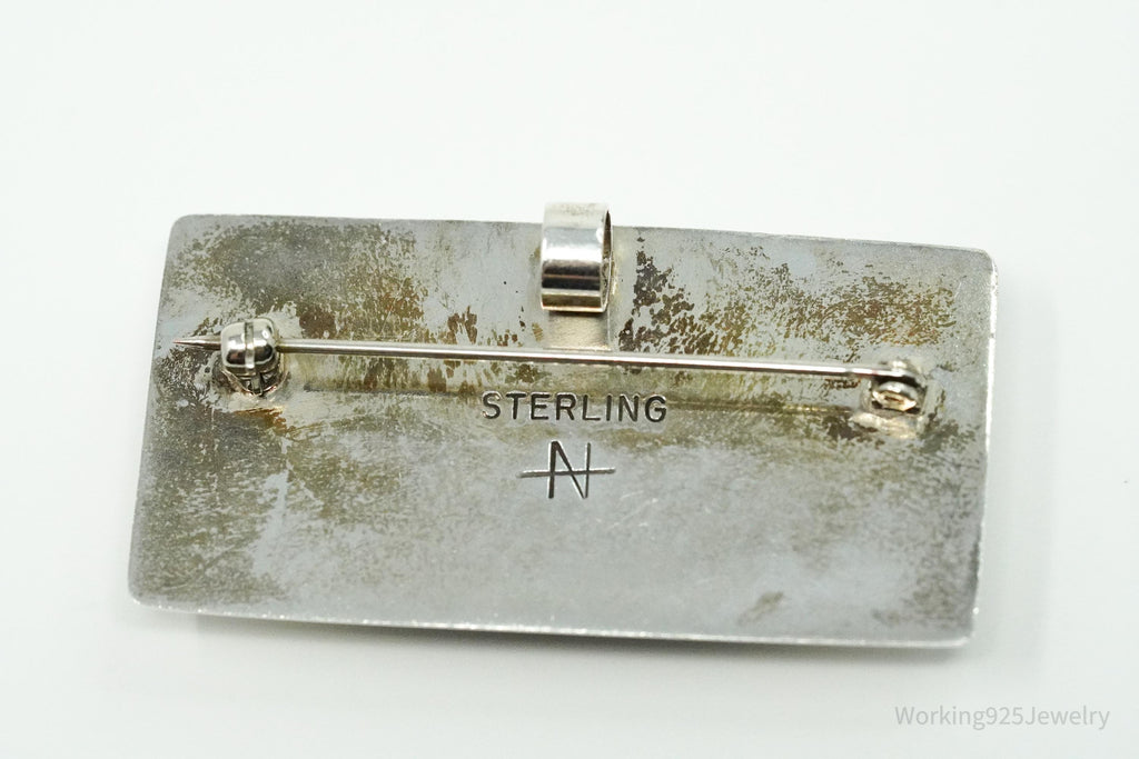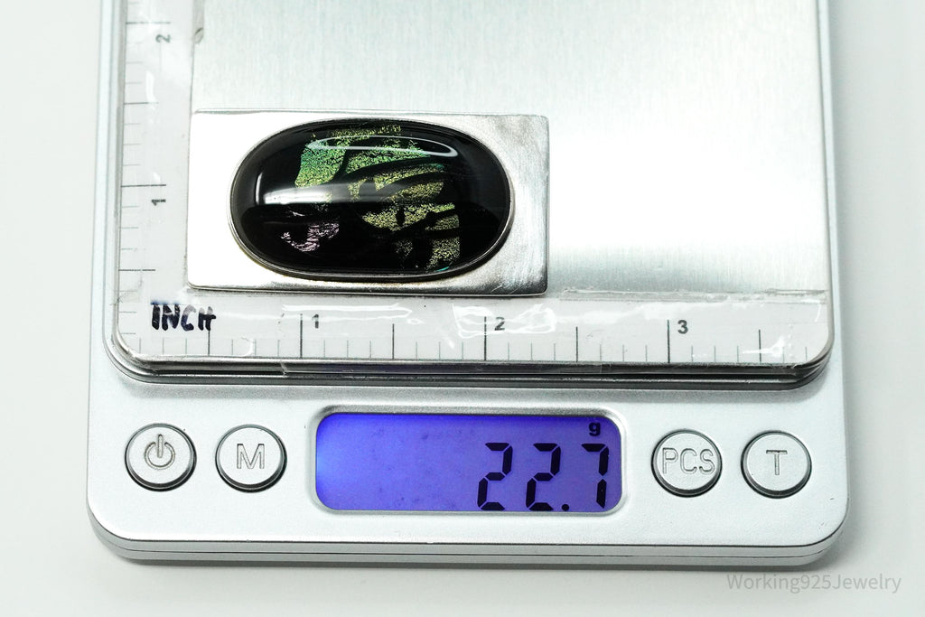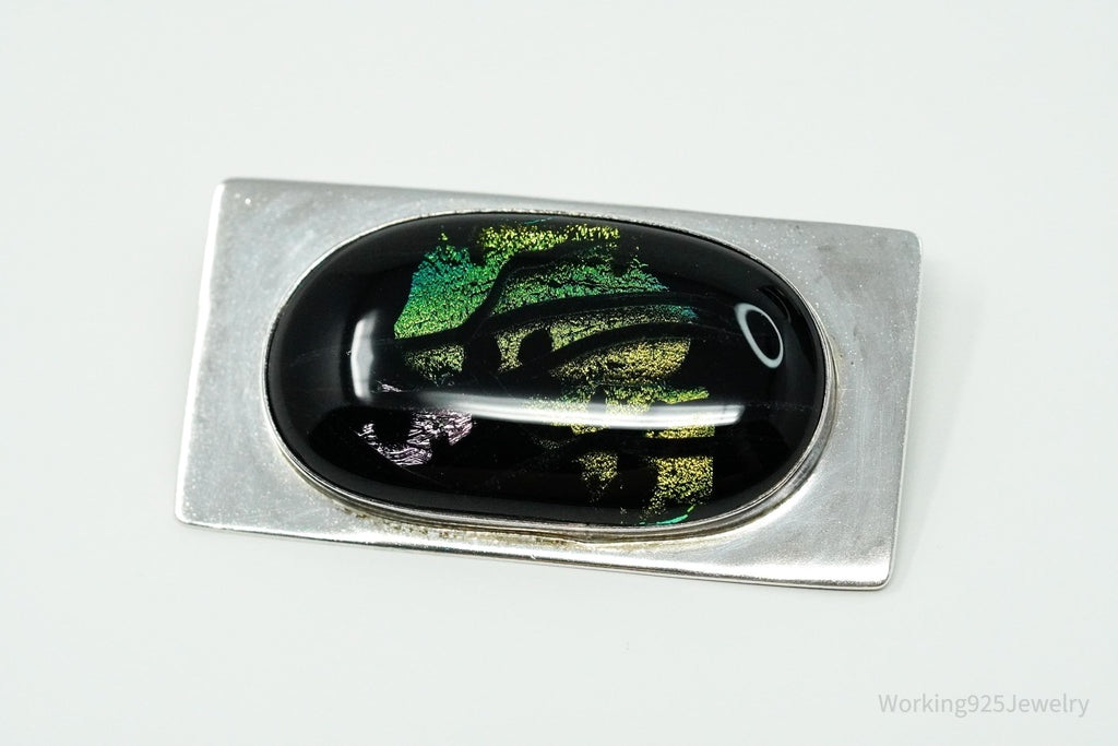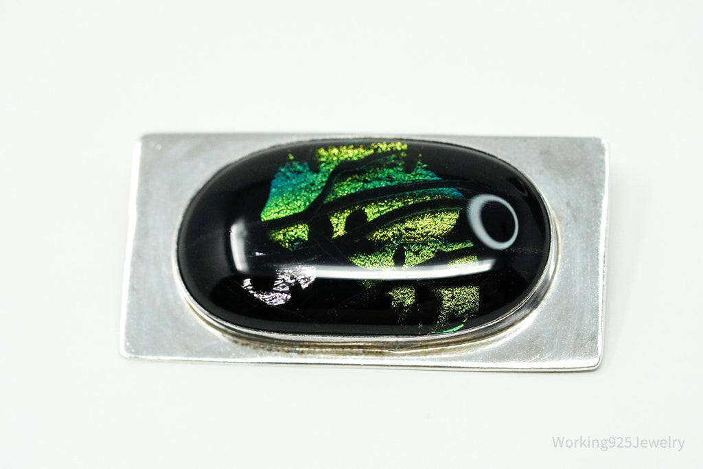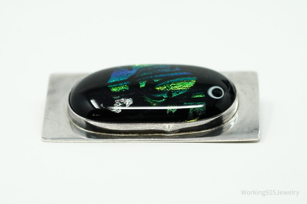 Vintage Large Dichroic Glass Sterling Silver Brooch Pin Pendant